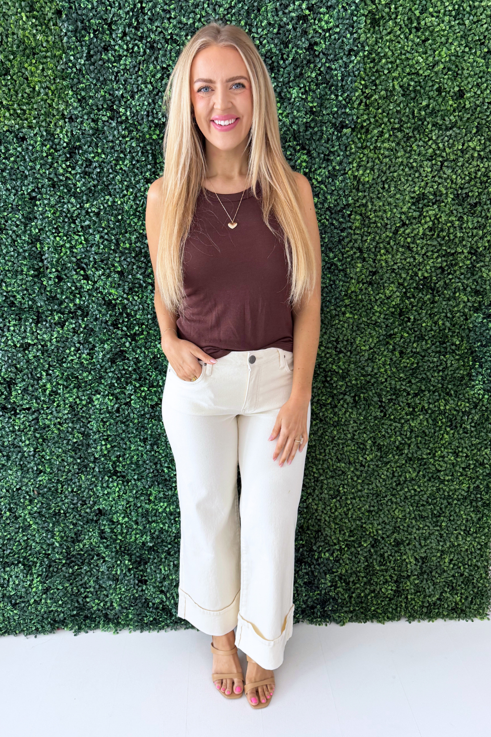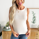 Laid-back and made for easy days, this relaxed tank is crafted from breathable loose knit jersey. With a classic crew neckline, bra-friendly wide straps, and a tuckable fit, it’s the kind of essential you’ll reach for on repeat.
