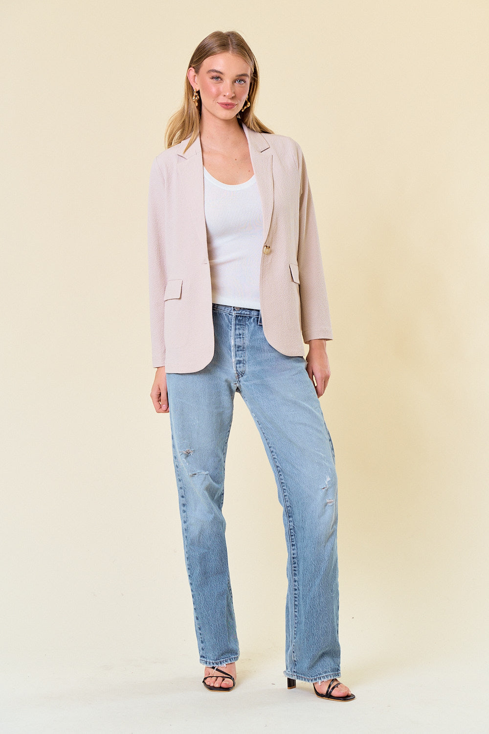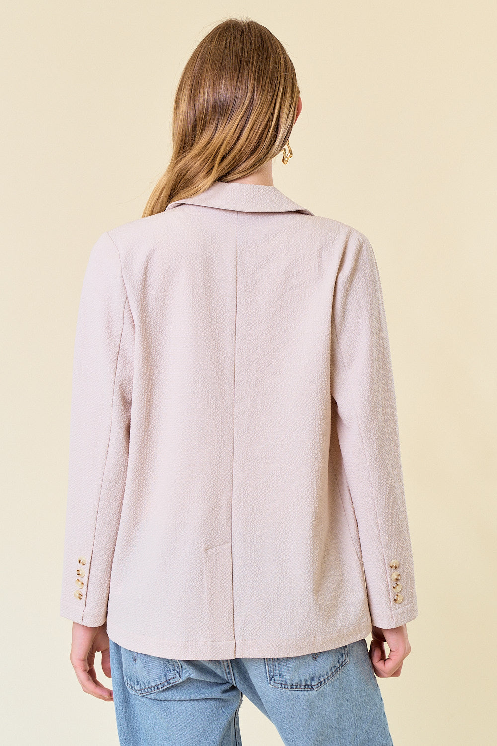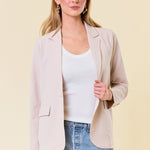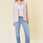 Seersucker Oversized Blazer with Front Flap Pocket