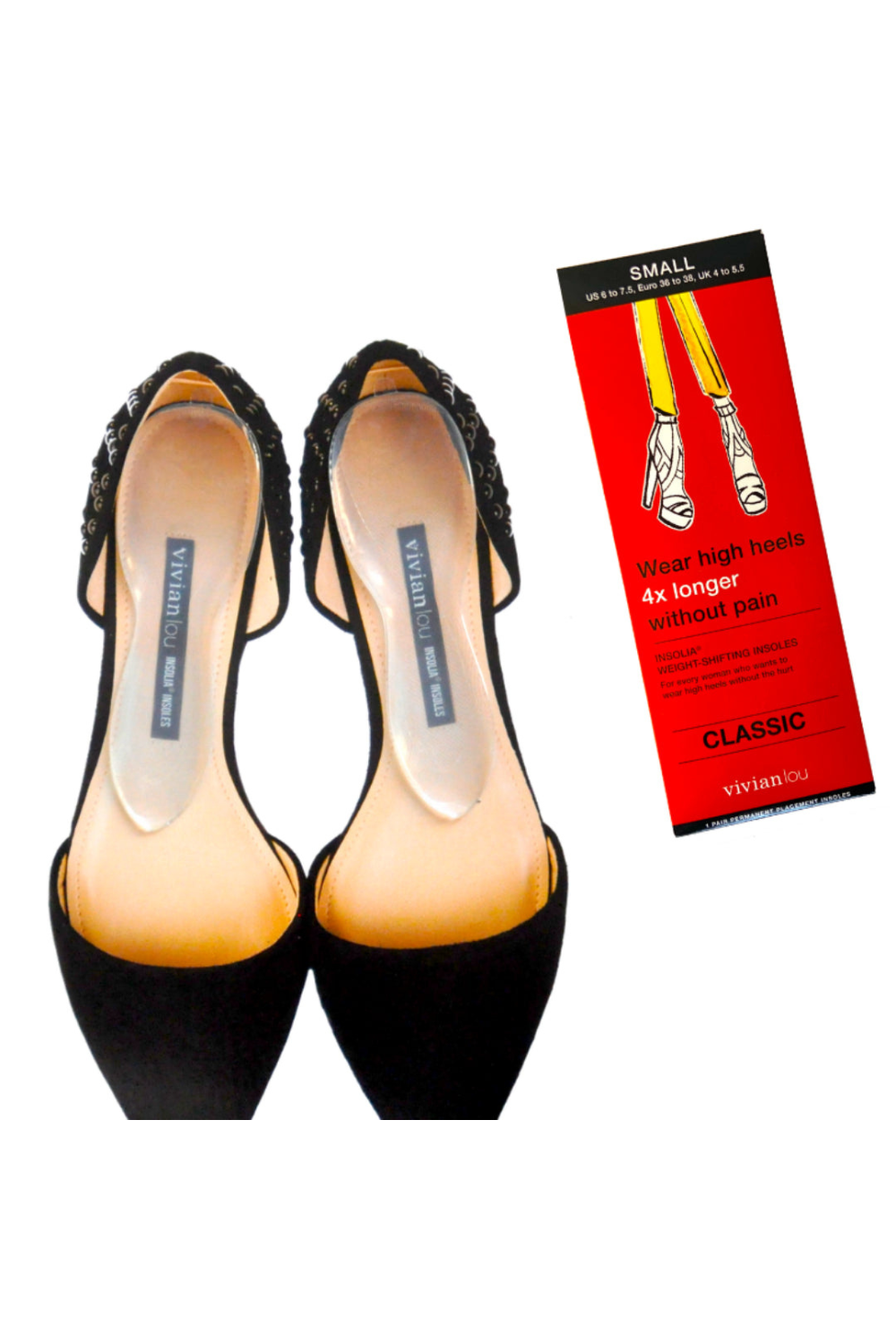 Designed by a podiatrist and engineered by a rocket scientist, Vivian Lou Insolia® Weight-Shifting Insoles for High Heels were created for every woman who wants to wear high heels without the hurt. Permanent placement insoles are a revolution in design and comfort and unlike anything you’ve ever experienced. They ever-so-slightly rotate the heel bone up and back allowing for a more equal distribution of weight between the forefoot and heel. They also stop the feet from slipping forward in shoes.