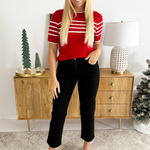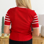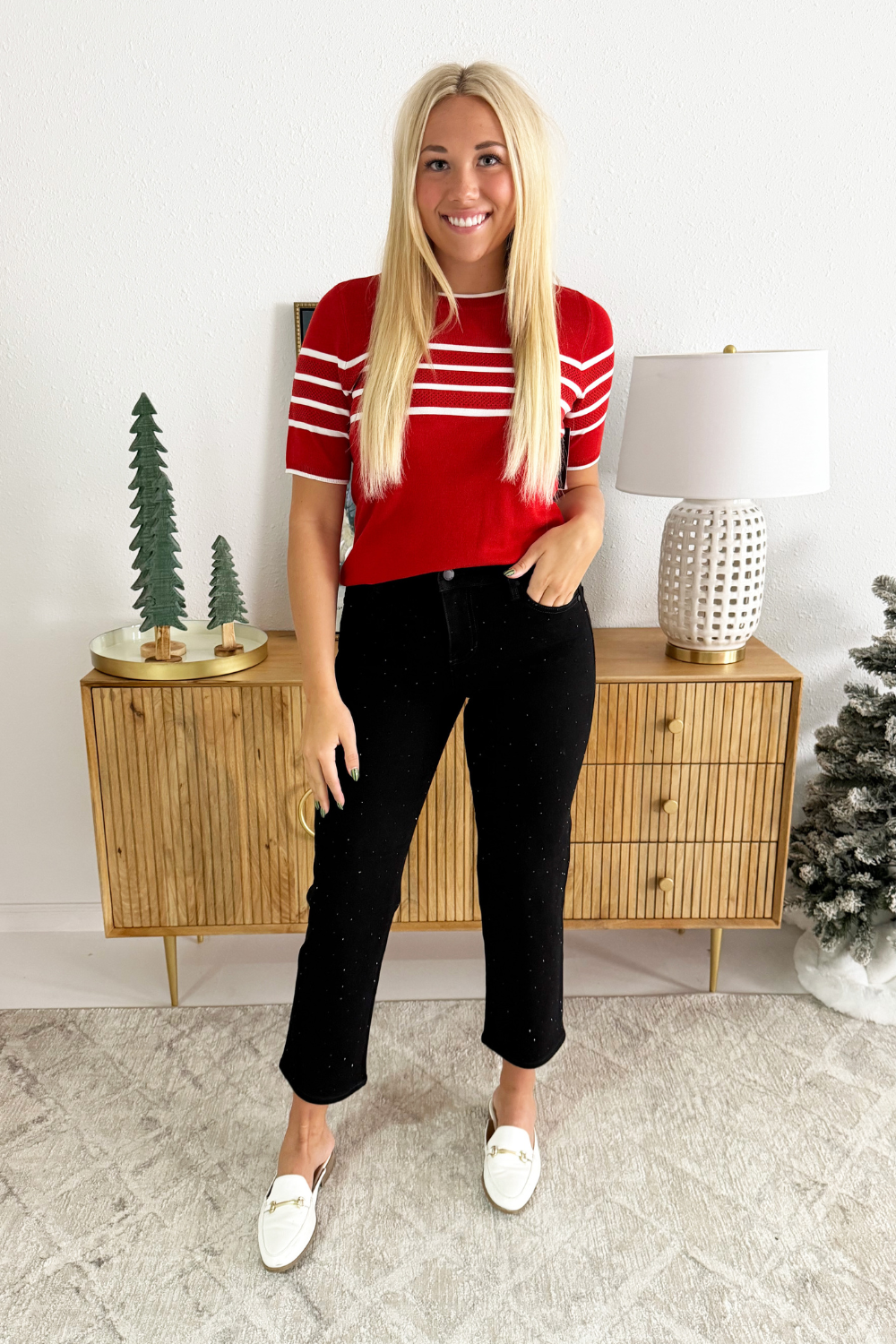 This short sleeve woven top features chic stripe details across the front, adding a touch of modern flair to a classic silhouette. Lightweight and effortlessly stylish, it’s perfect for pairing with jeans or shorts for a casual yet polished look. Ideal for everyday wear or a relaxed day out!