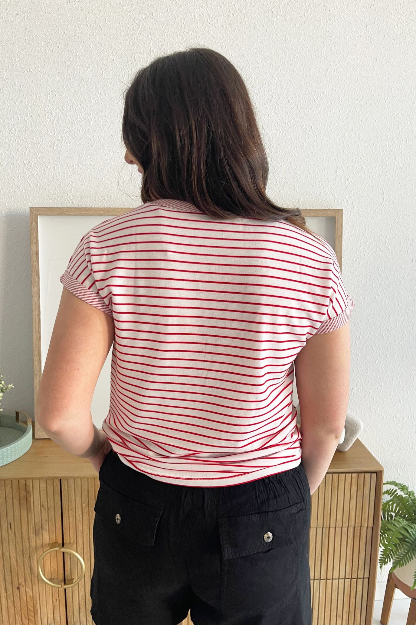 Short Sleeve Pinstripe Crew Neck Top