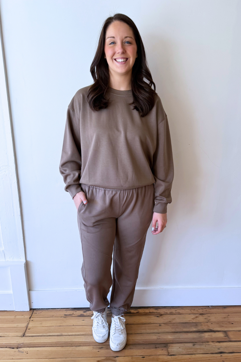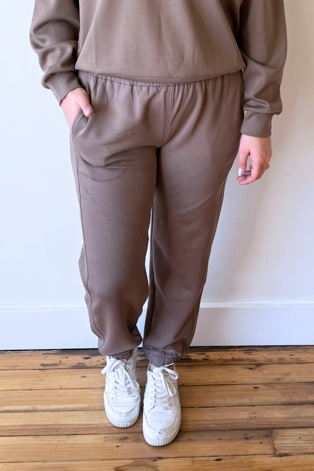 Signature Soft Jogger Pants Designed for all-day comfort, these joggers feature an ultra-soft feel with a relaxed, flattering fit. The elastic waistband and tapered leg give them a classic silhouette that’s easy to dress up or down. Perfect for lounging, travel days, or pairing with the matching pullover for a complete set.