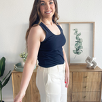 The Sirena Rib Tank from Z Supply is a great warm weather staple. This tank has a scoop neck, bra-friendly straps, and is made from midweight heavy soft wash fabric. It is perfect on its own or as a fitted layer.