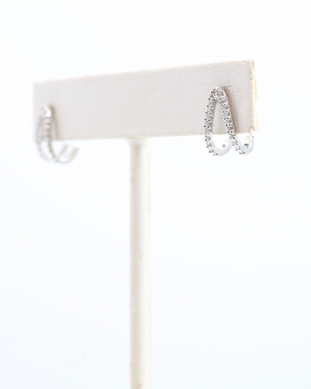 Add a sparkle to your day with the Sissy Huggie Earring in Silver! These pave V-shaped huggies shimmer with dazzling CZ stones set in white gold-dipped metal, making every glance a little more magical.