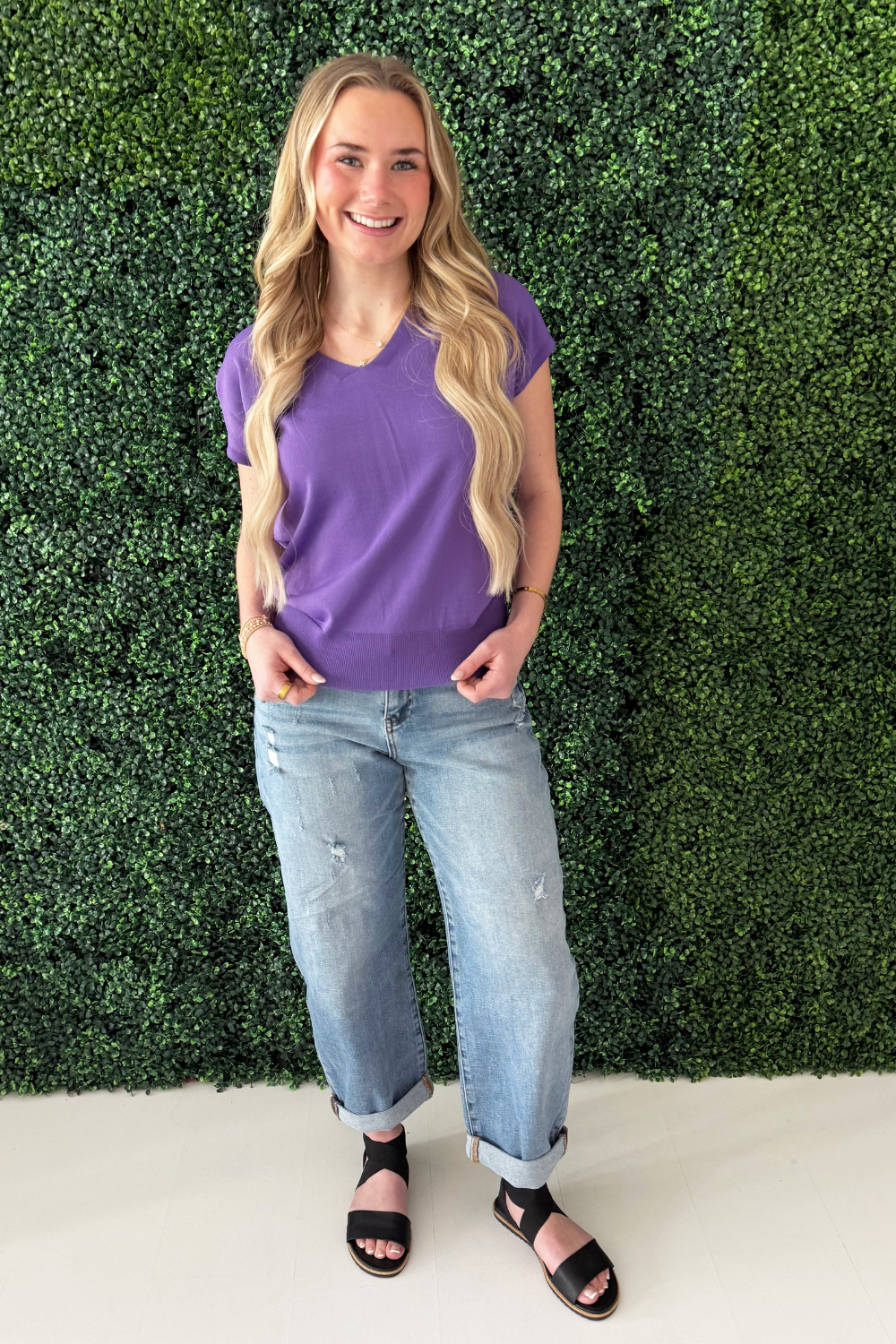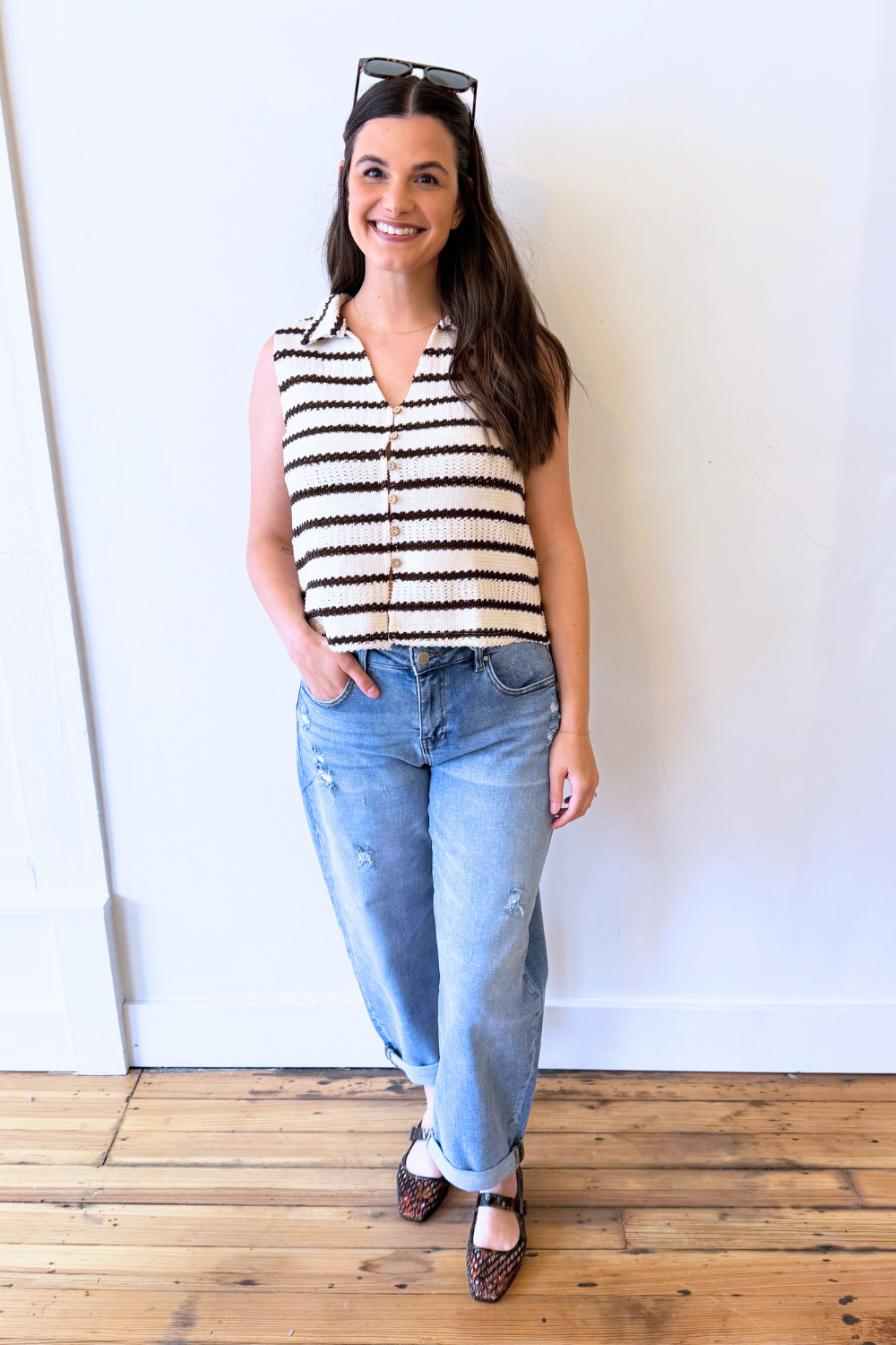 Chelsea is 5'5" and wears a Small/6