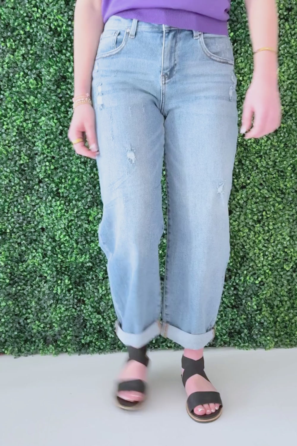 Slouchy Ankle Length Barrel Jeans with Cuffs