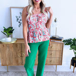The Smock Waist Floral Tank Top is a bright and feminine piece perfect for warm weather days. Featuring a flattering smocked waist and flowy silhouette, this tank is designed with a soft floral print that adds a fresh and playful touch. Easy to style with denim or colored bottoms for an effortless everyday look.
