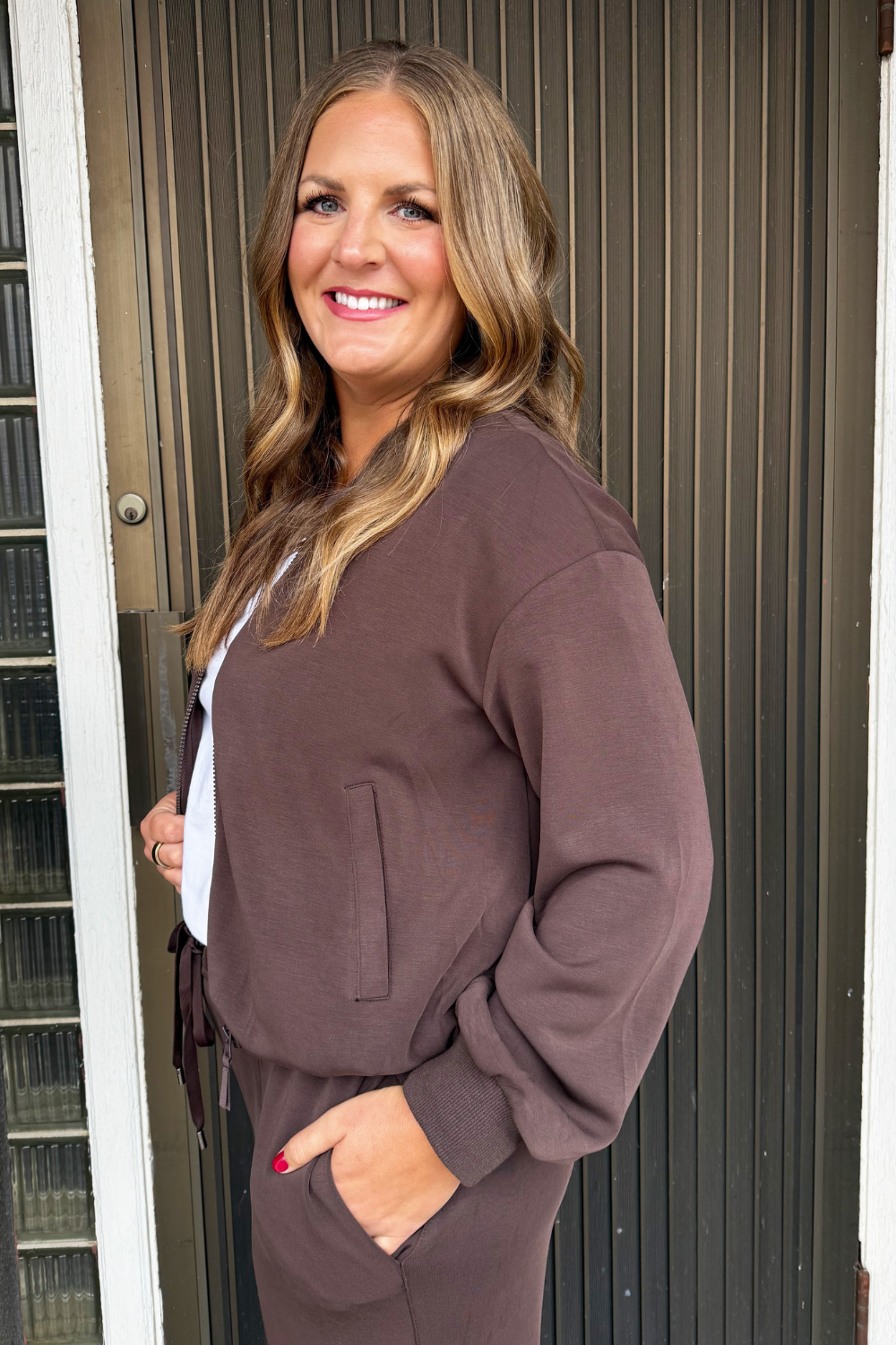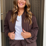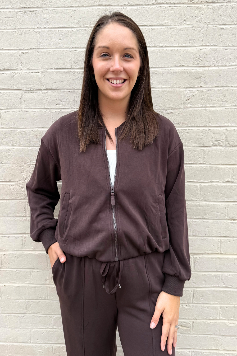 The Soft Modal Bomber Jacket will easily become a closet favorite this fall! This jacket features a zip front, elastic hem, and banded cuffs, making this the jacket you will reach for again and again! Wear this with the Soft Modal Easy Pull-On Pants for a matching set or wear along for endless styling options!