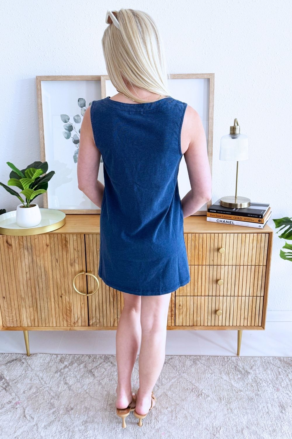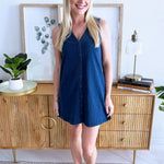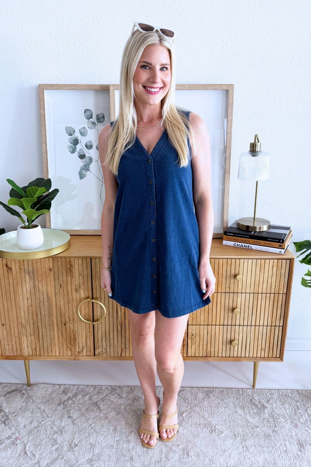 Made of 100% cotton, our signature knit jersey fabric brings all the comfort to this Solace Denim Mini Dress. It's v- neck button front and lightweight touch make the dress an easy choice for everyday wear.