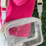 Our Stadium Bag in Midnight Blue is made from durable PVC and stylish vegan leather trims, making it the perfect stadium-approved accessory for events and festivals. The removable strap allows you to easily switch up your look with our Interchangeable Canvas Straps, or even coordinate the strap color with your favorite team on game day.