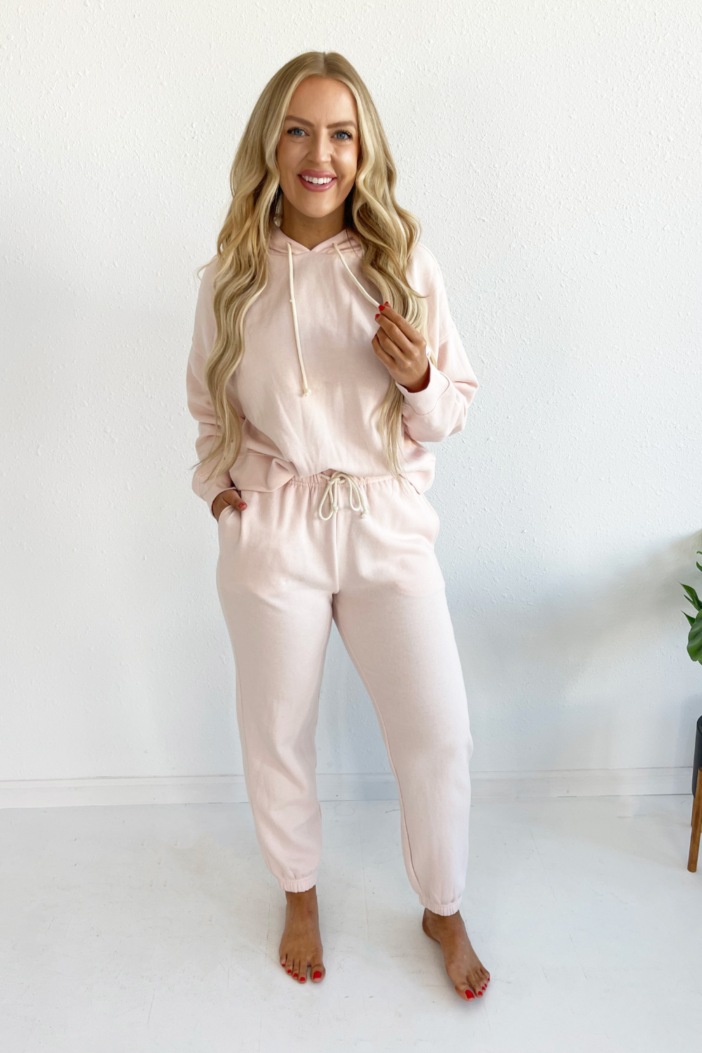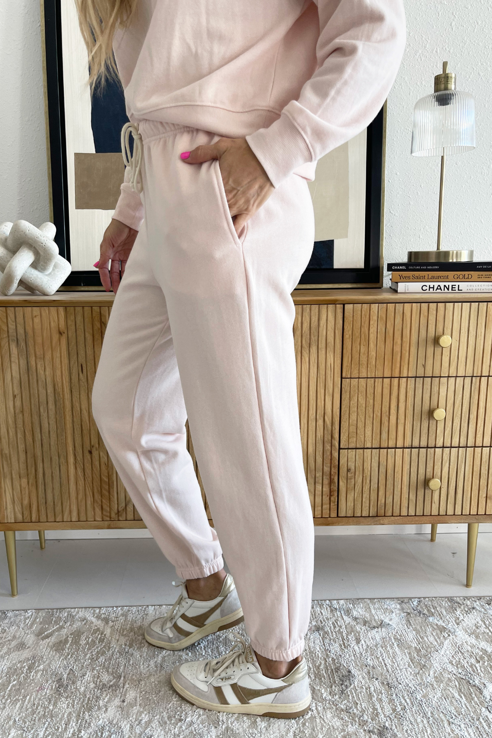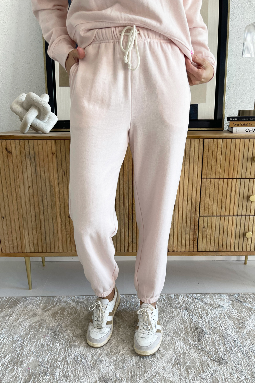The Stadium Jogger has an updated look you are sure to love. The joggers have smooth lines and a relaxed fit. The cozy fleece fabric makes these ankle length joggers super soft and cozy. Wear the joggers in Pink Salt with the matching Infield Hoodie to get Erin’s look.