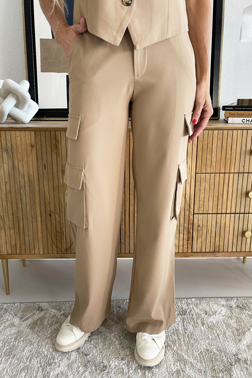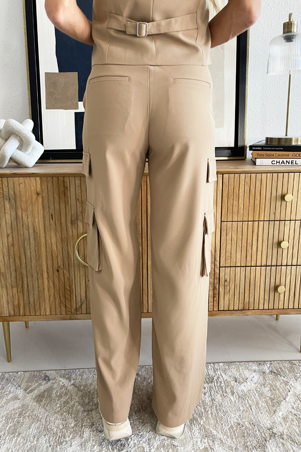 Tan on tan is our JAM! Erin paired these Straight Leg Cargo Trousers with the Button Up Sleeveless Vest for an effortless casual look.