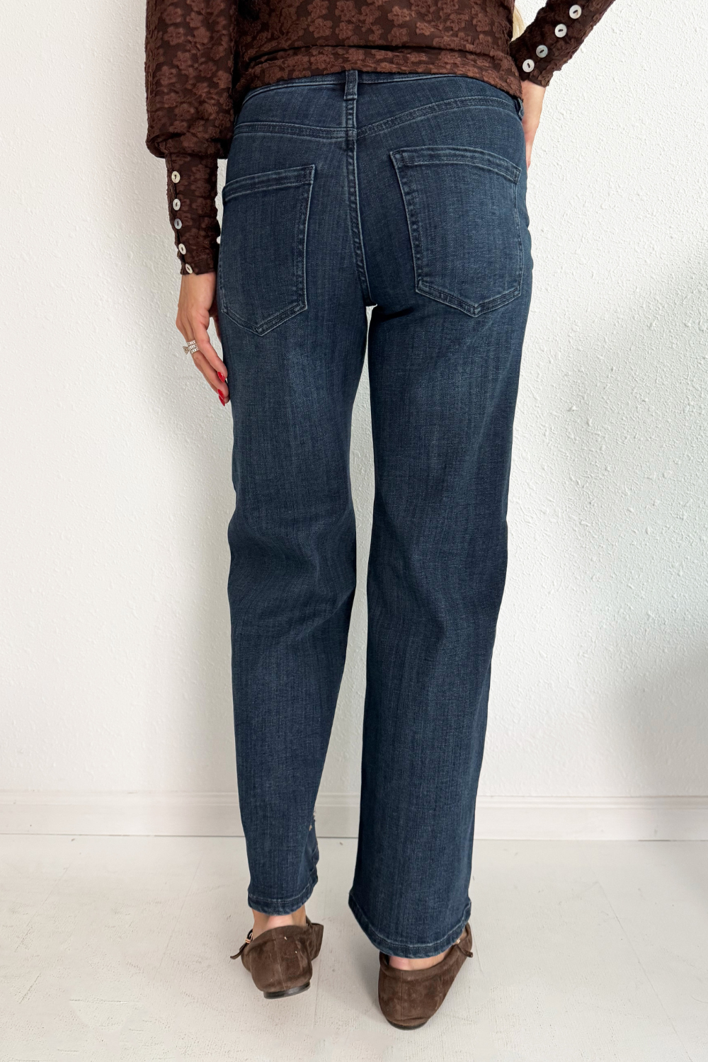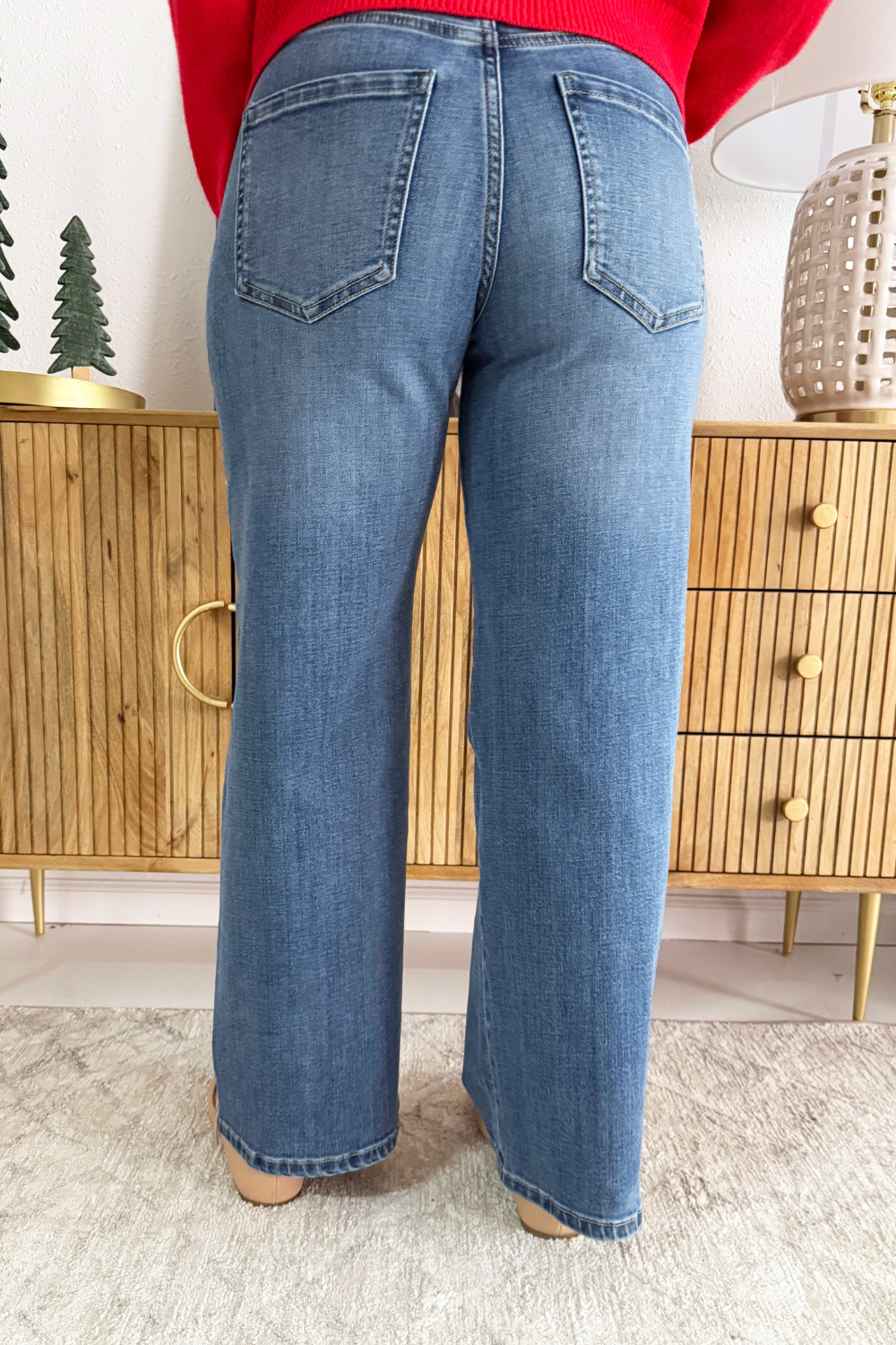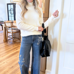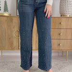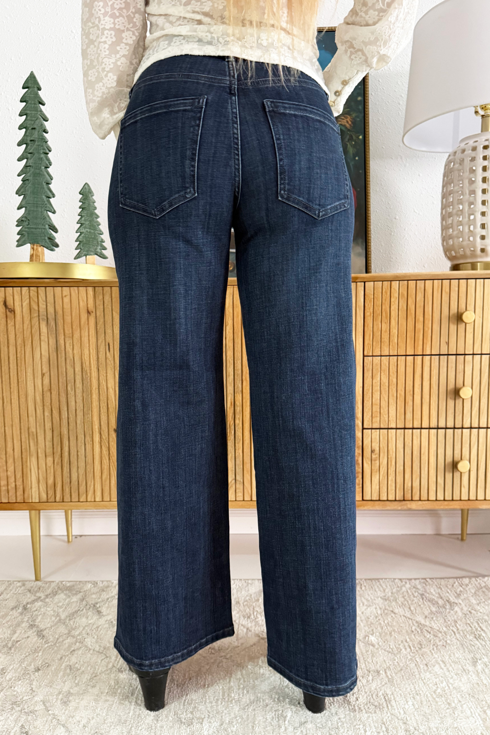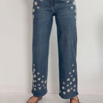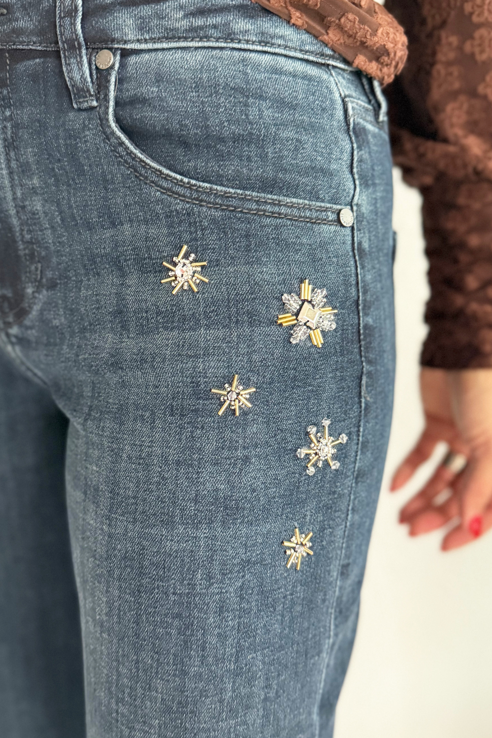 Where denim meets artistry. This wide leg features an intricate display of crystal embellishments that shimmer with effortless sophistication. Each detail catches the light in motion, creating a modern sense of celebration. Crafted with our signature soft stretch and structured drape, it brings contemporary glamour to a timeless silhouette.