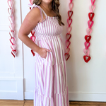 Stripe Tie Shoulder Smocked Midi Dress