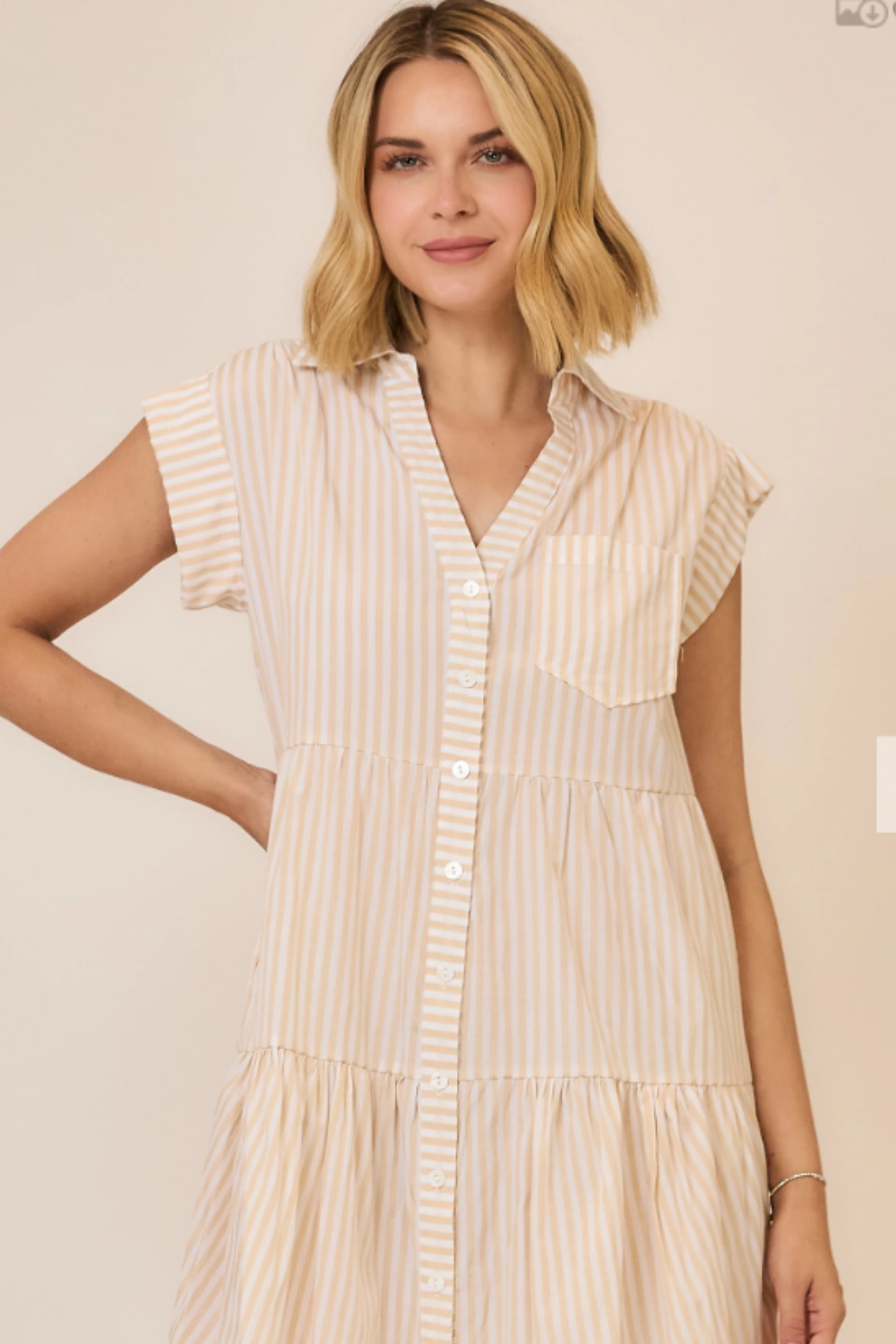 Striped Cap Sleeve Tiered Button Down Mini Dress