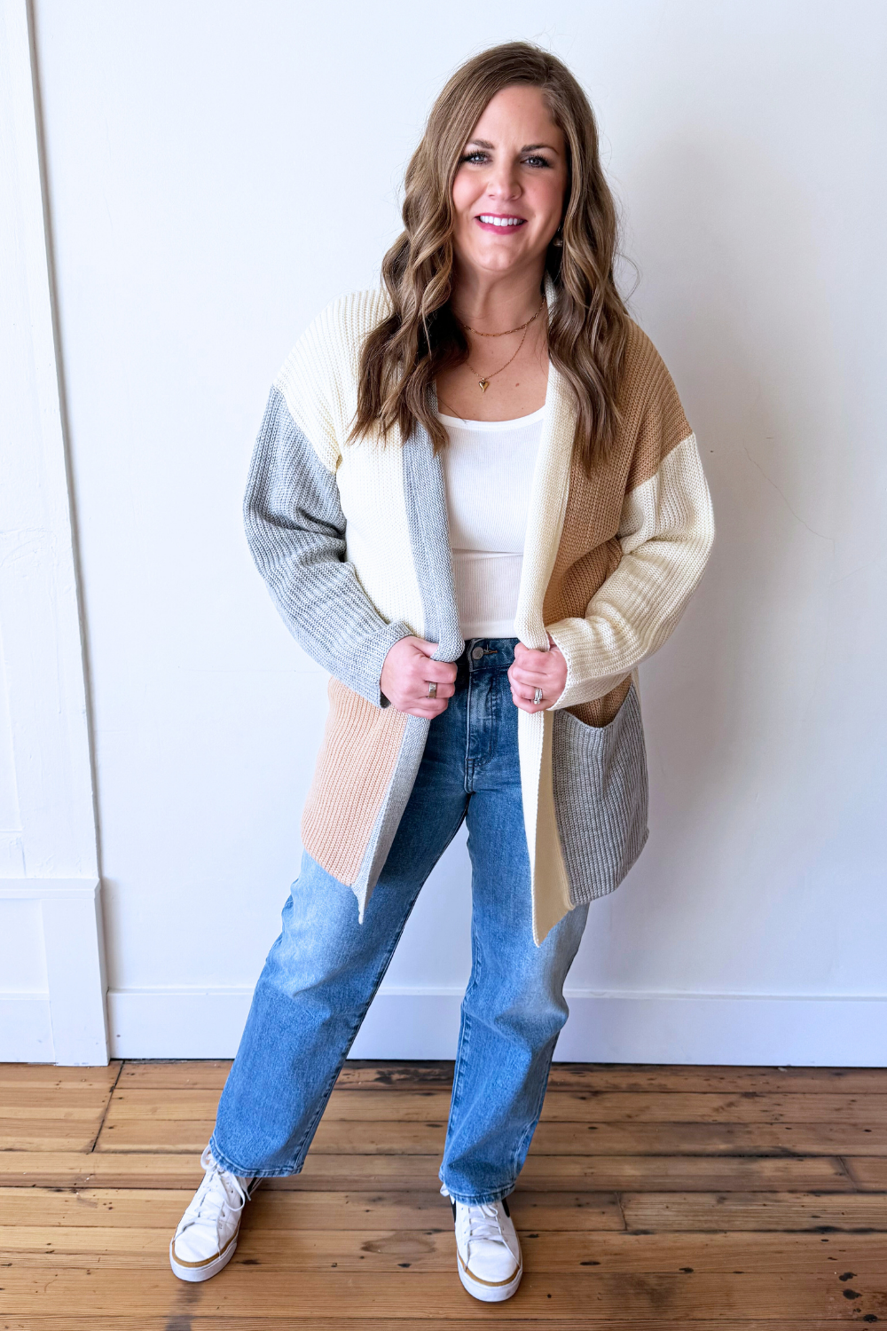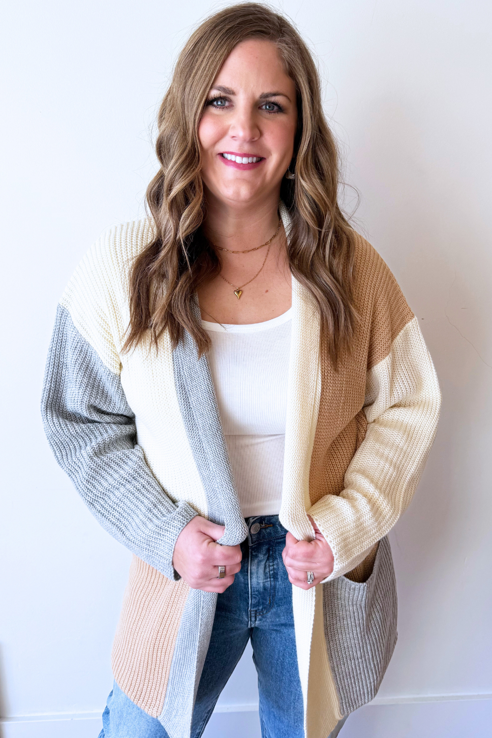 This striped cardigan with patch pockets is a cozy classic with everyday charm. Designed with a soft knit feel and relaxed fit, it features functional patch pockets for added comfort and ease. Perfect for layering, it’s an effortless piece you’ll reach for season after season!