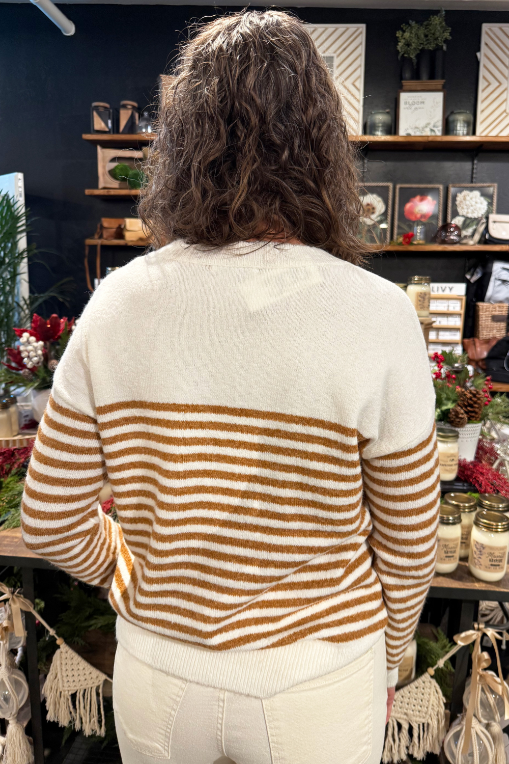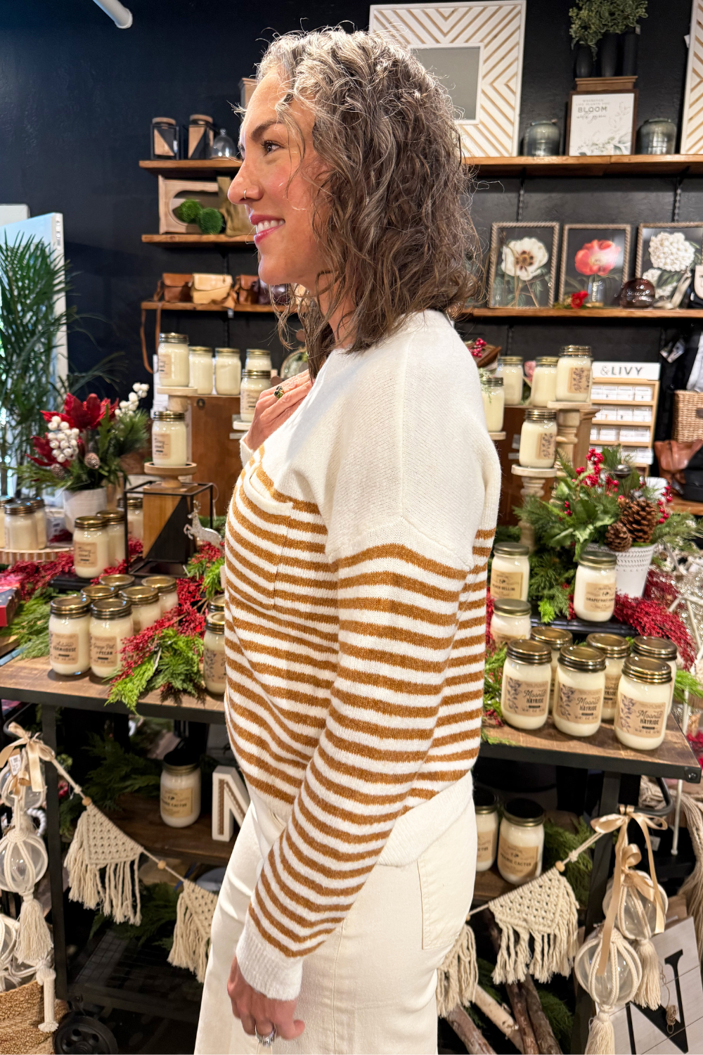 This striped pullover sweater will be something you reach for again and again! It pairs back perfectly to any denim in any wash! This is an add to cart no brainer!