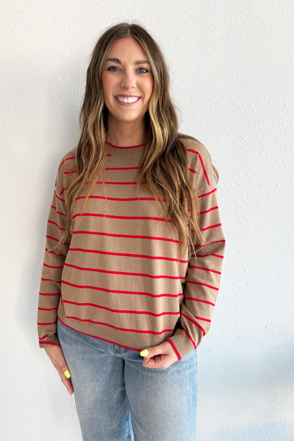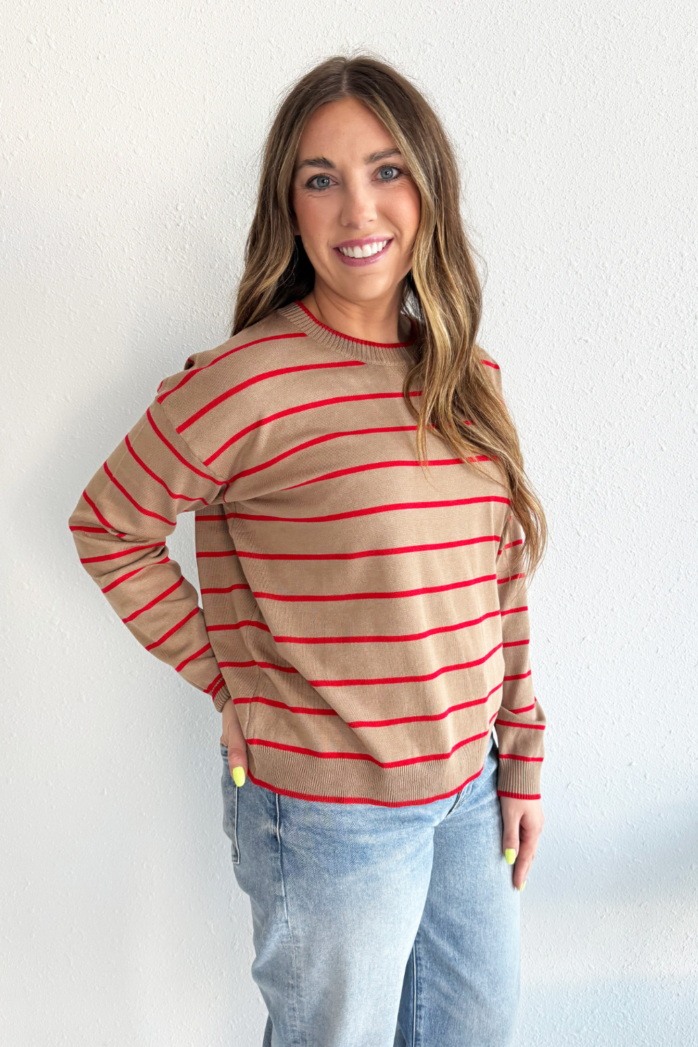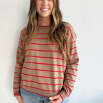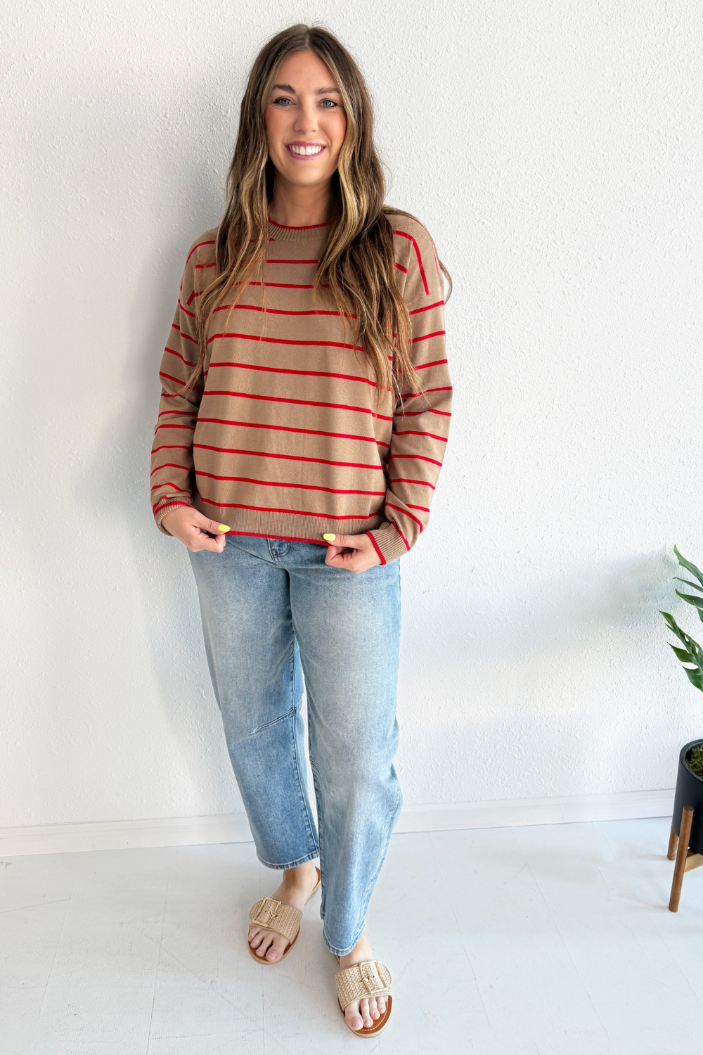 The Striped Lightweight Sweater is perfect for cooler temps. This long sleeve sweater has a crew neck and striped design. The lightweight fabric makes it ideal for crisp fall days. Wear it with jeans and sneakers for an easy casual look.