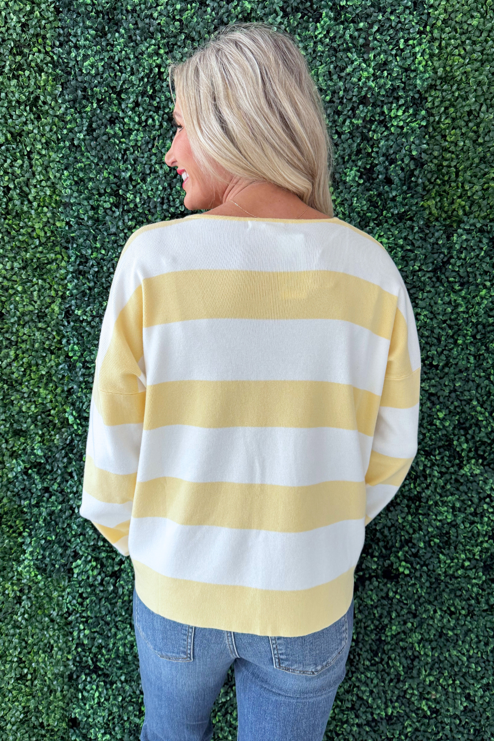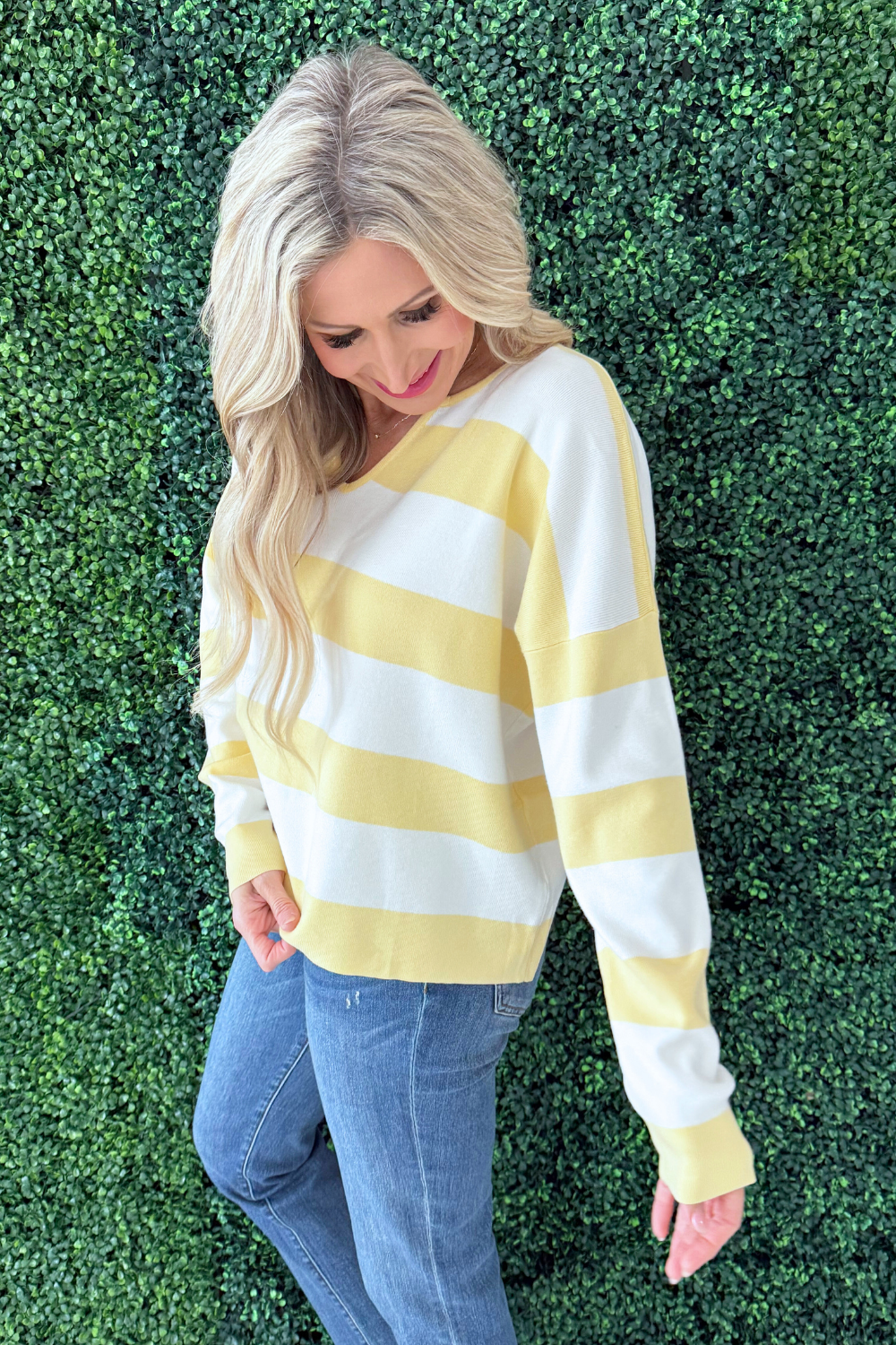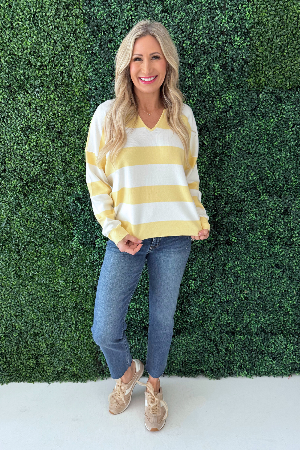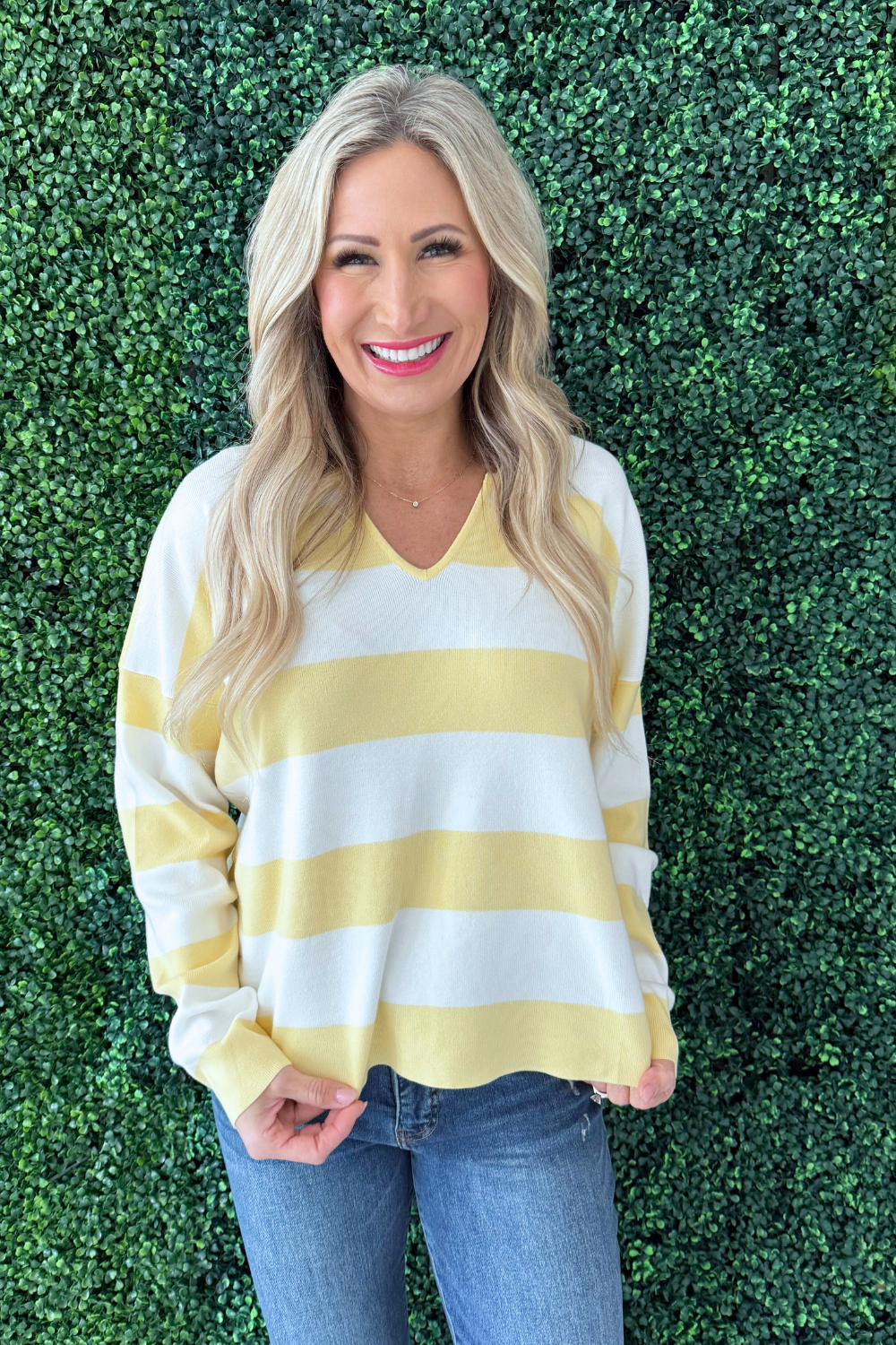 This striped notch neck knit sweater offers a fresh, modern update on a classic silhouette. Featuring a soft knit feel and subtle notch neckline, it combines comfort with effortless style. Perfect for layering or wearing on its own, it’s a versatile wardrobe staple!