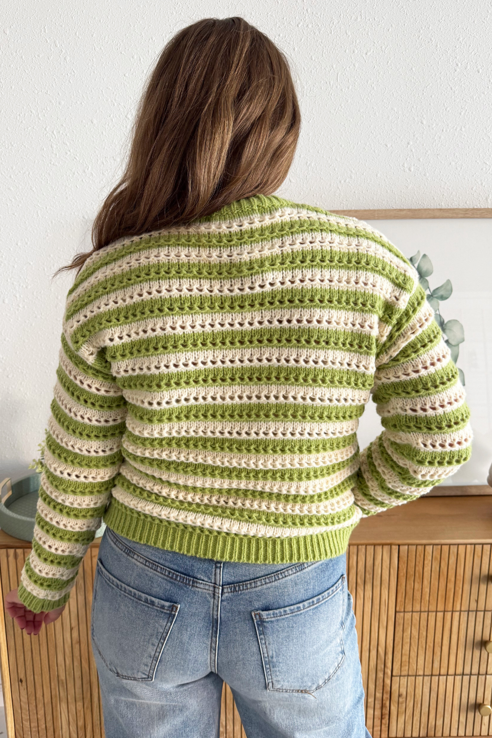 Fun and cozy, this Striped Pointelle Knit Sweater is perfect for any occasion this fall season! Featuring a striped pattern and open knit fabric, this pairs perfectly back to denim and heels for an outfit that takes you effortlessly form day to night!