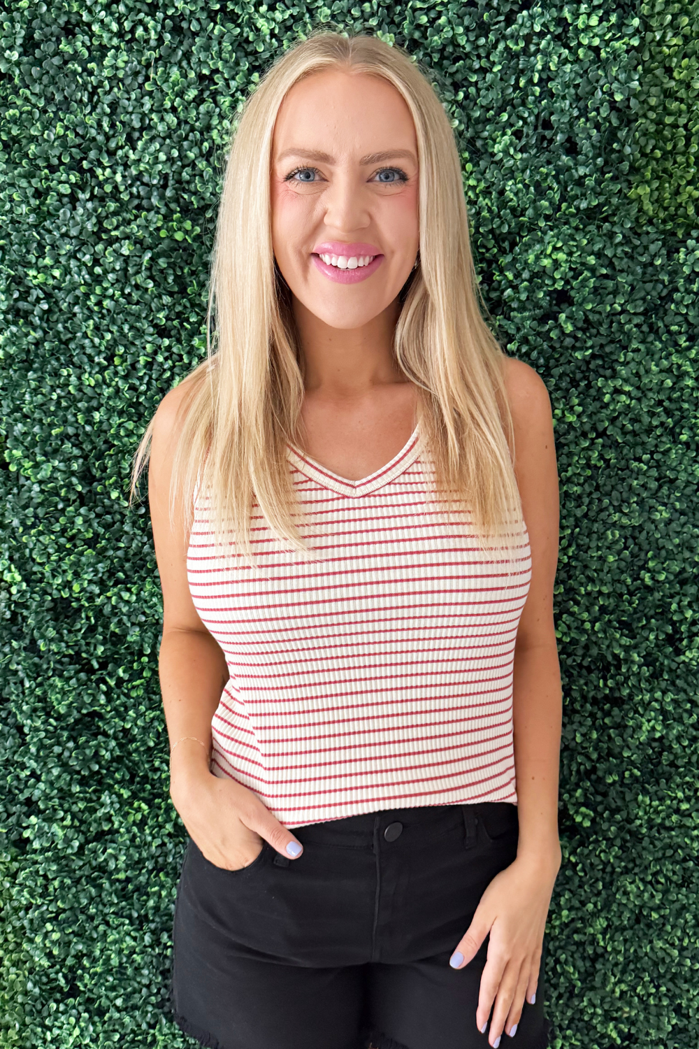 The Striped Ribbed Knit Tank Top is a basic staple that has all the comfort and stretch you need in a tank! With 3 color ways, there are no shortage of ways to style this classic.