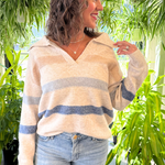 Wrap yourself in effortless style with this Striped Wide Collar Sweater. Featuring a relaxed fit and bold stripe pattern, it perfectly balances cozy comfort with a chic, modern edge! Pair it with denim or a skirt for an effortlessly polished look!