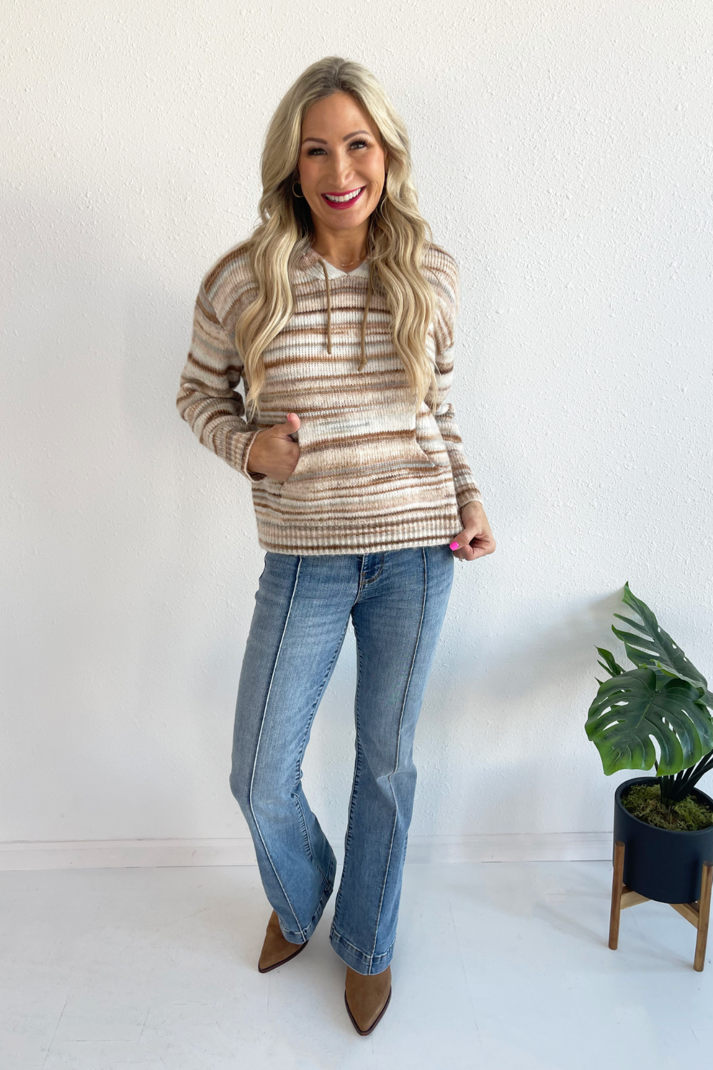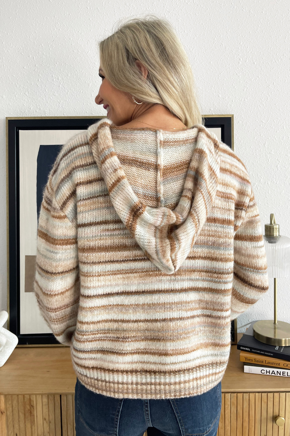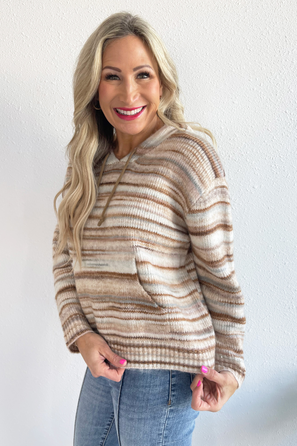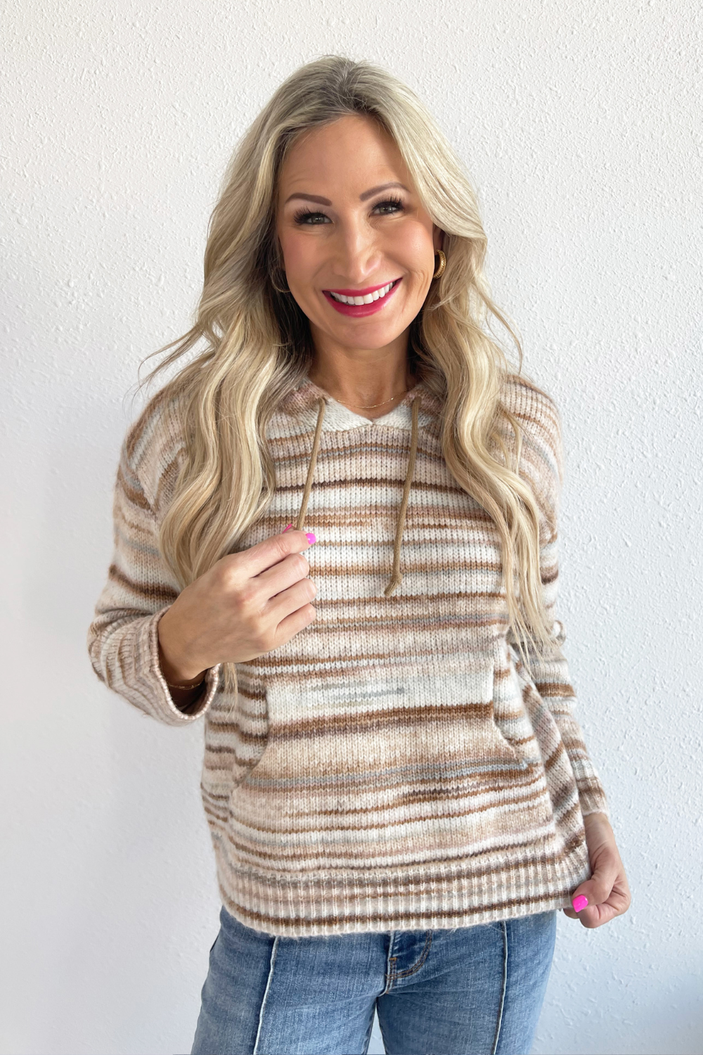 Take your loungewear game to the next level with this Striped Sweater Hoodie. Featuring a comfy hood and kangaroo pocket, this drop shoulder hoodie is the perfect way to stay cozy and bring a touch of style to your casual look. You'll be looking and feeling your best!