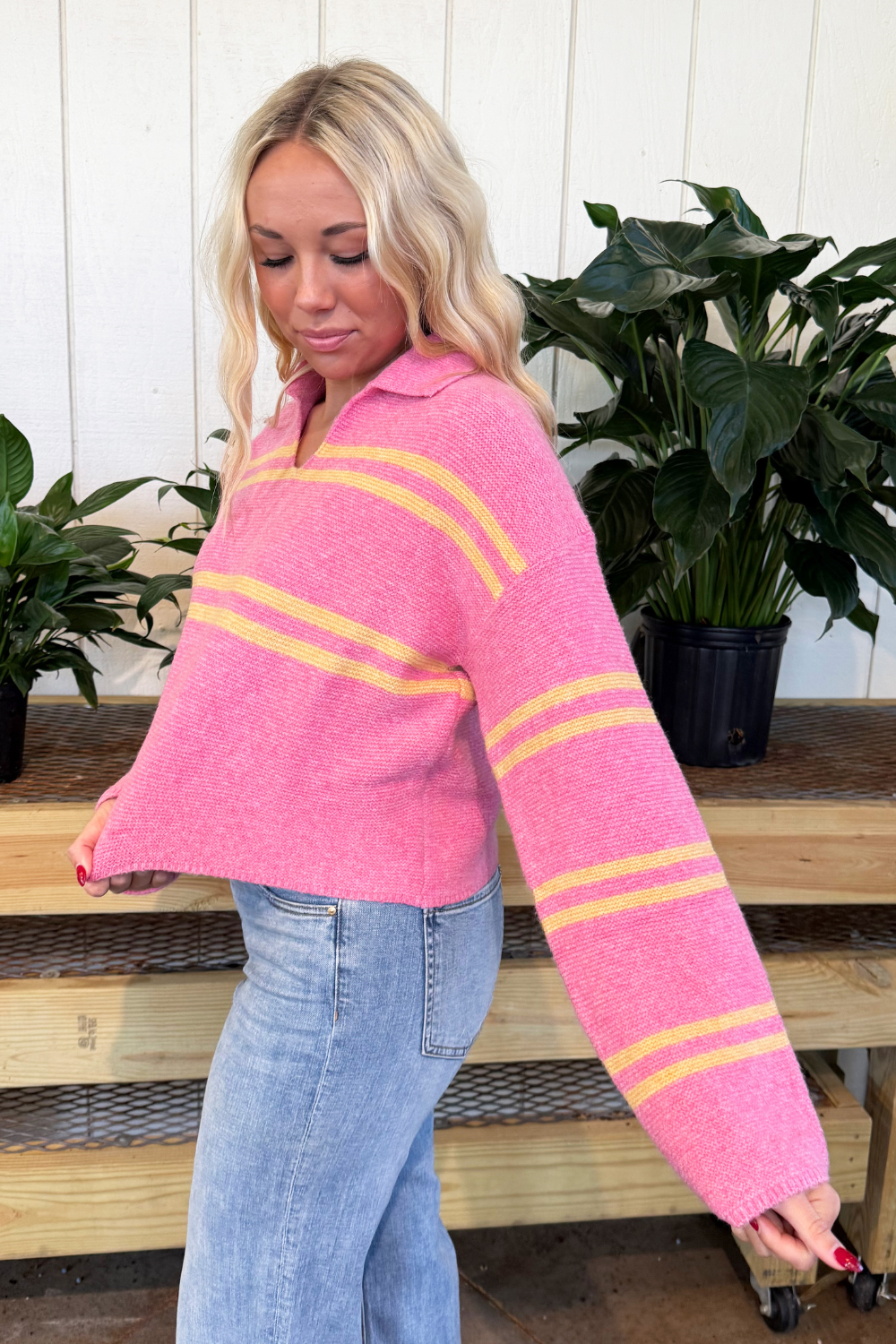 Striped V-Neck Long Sleeve Sweater
