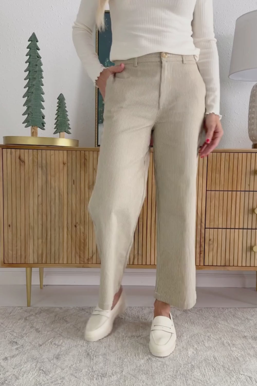 These striped wide-leg pants bring a modern, elongating look with their fluid drape and vertical lines. Designed with a classic zip fly and tailored waistband, they offer a polished fit that still feels effortlessly relaxed. A versatile piece you can dress up or down with ease!