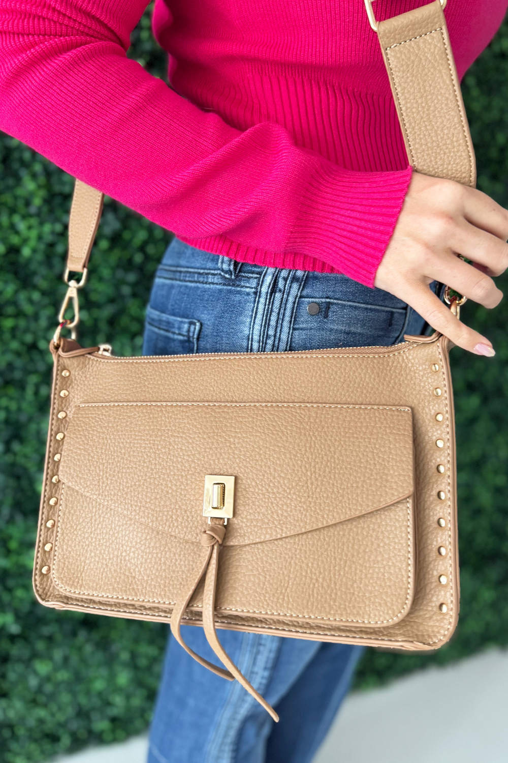 Perfect for fall, this studded crossbody bag will elevate any outfit! Coming in multiple colors, this bag will fit any outfit and occasion!