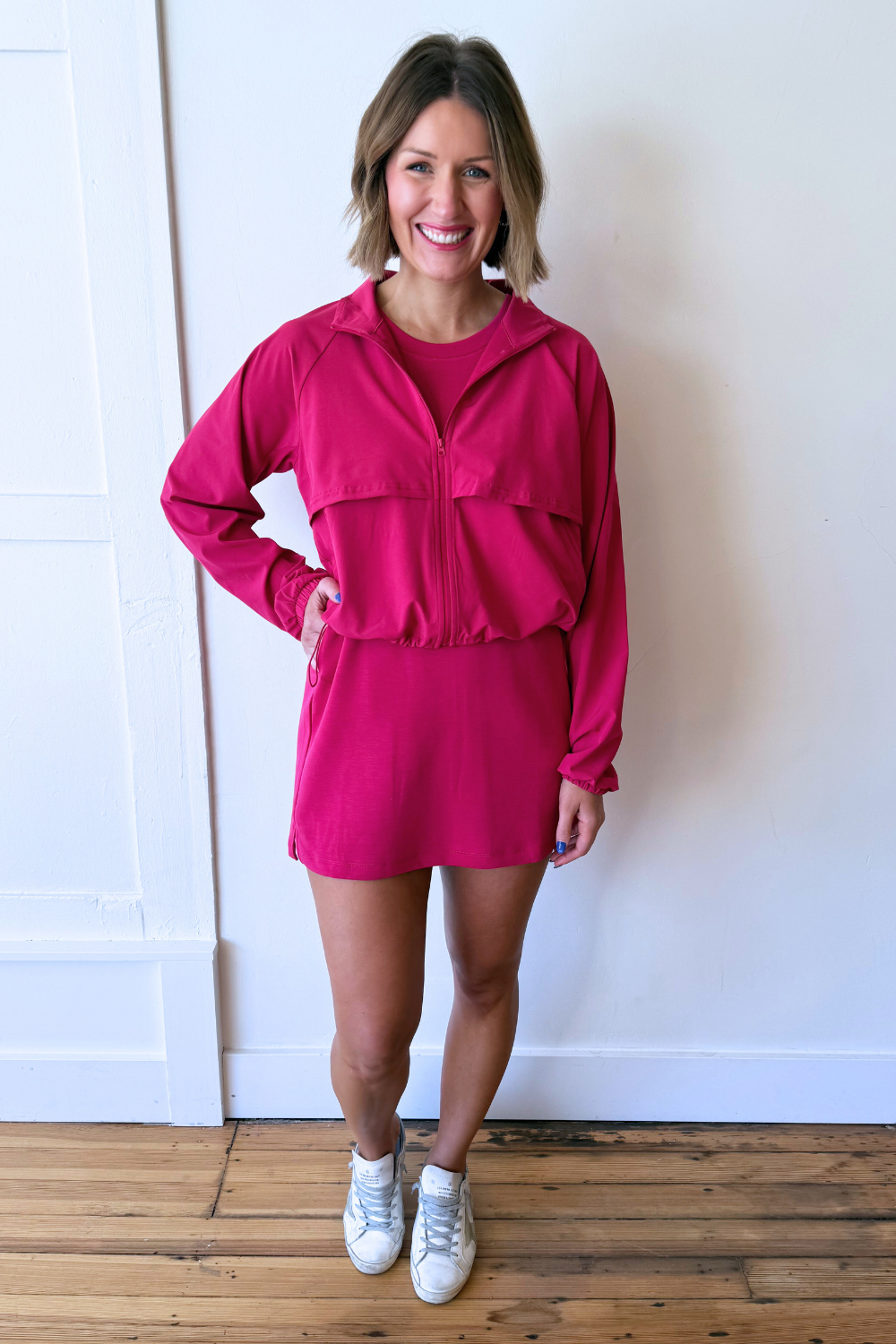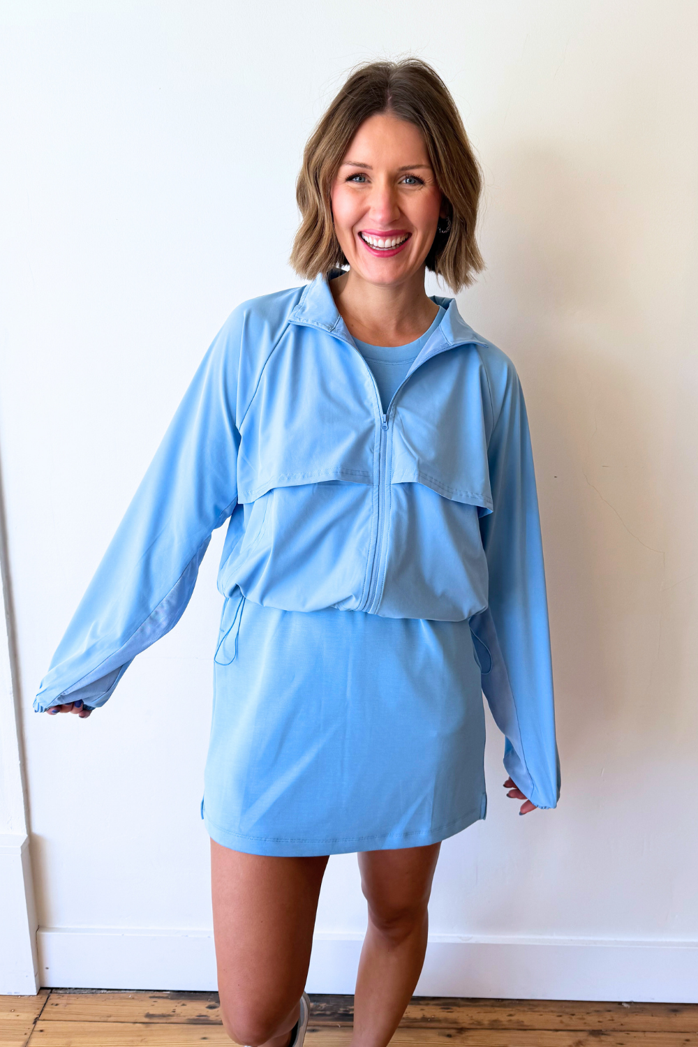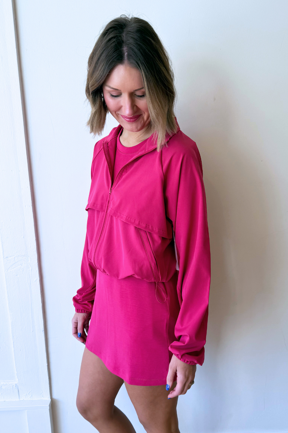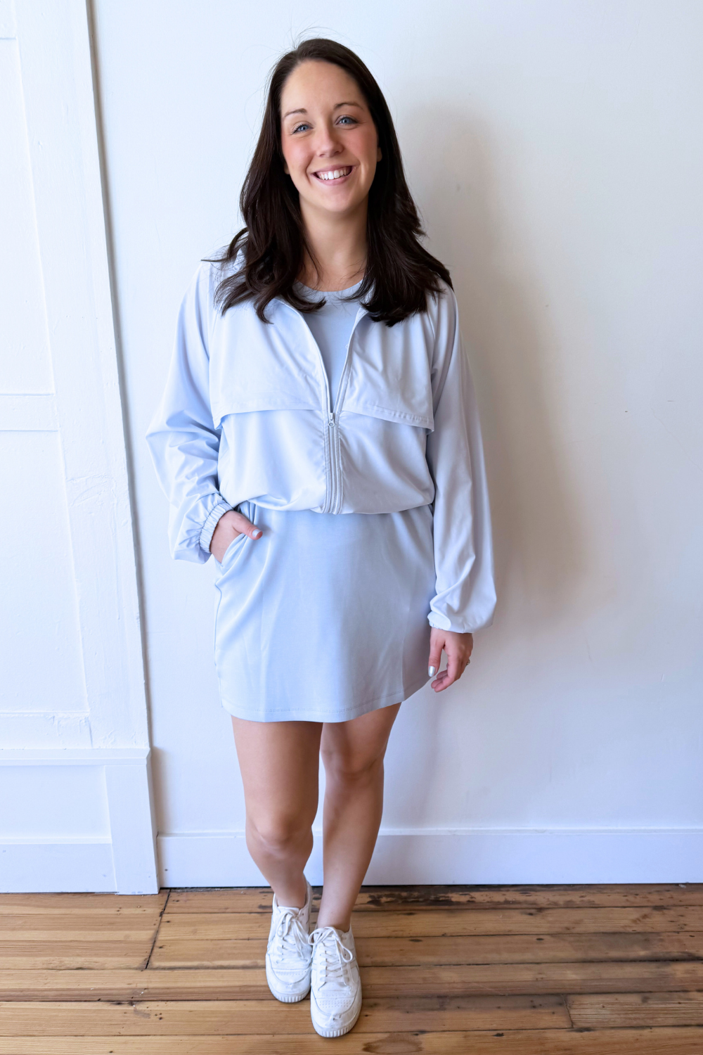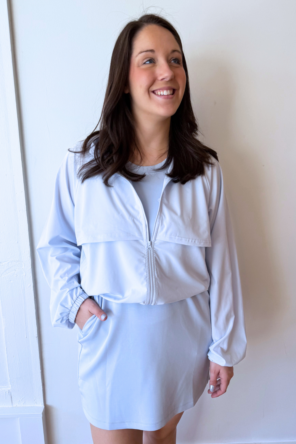 Swift Move Windbreaker Active Jacket Lightweight, sporty, and ready for anything, this windbreaker is the perfect layer for on-the-go days. Designed with a relaxed fit and breathable fabric, it moves with you whether you’re heading to the gym or running errands. The functional details and easy silhouette make it a must-have for active and casual wear alike.