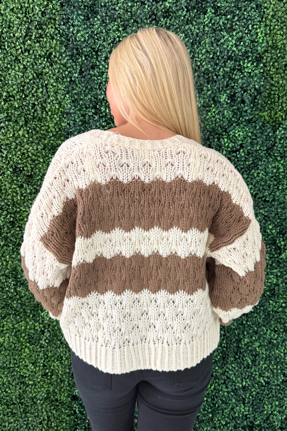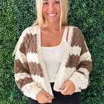 This textured striped sweater cardigan offers cozy warmth with a visually rich knit that adds depth and dimension. The open-front design and relaxed fit make it easy to layer, while the classic stripes bring a timeless touch. A go-to piece for effortless everyday style!