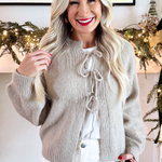A tie-front long sleeve cardigan that blends cozy comfort with effortless elegance. Designed with a soft knit and an adjustable waist tie, it creates a flattering, feminine silhouette. Perfect for layering through every season!