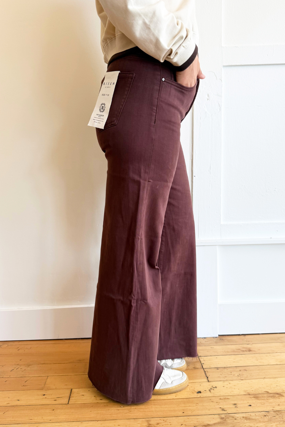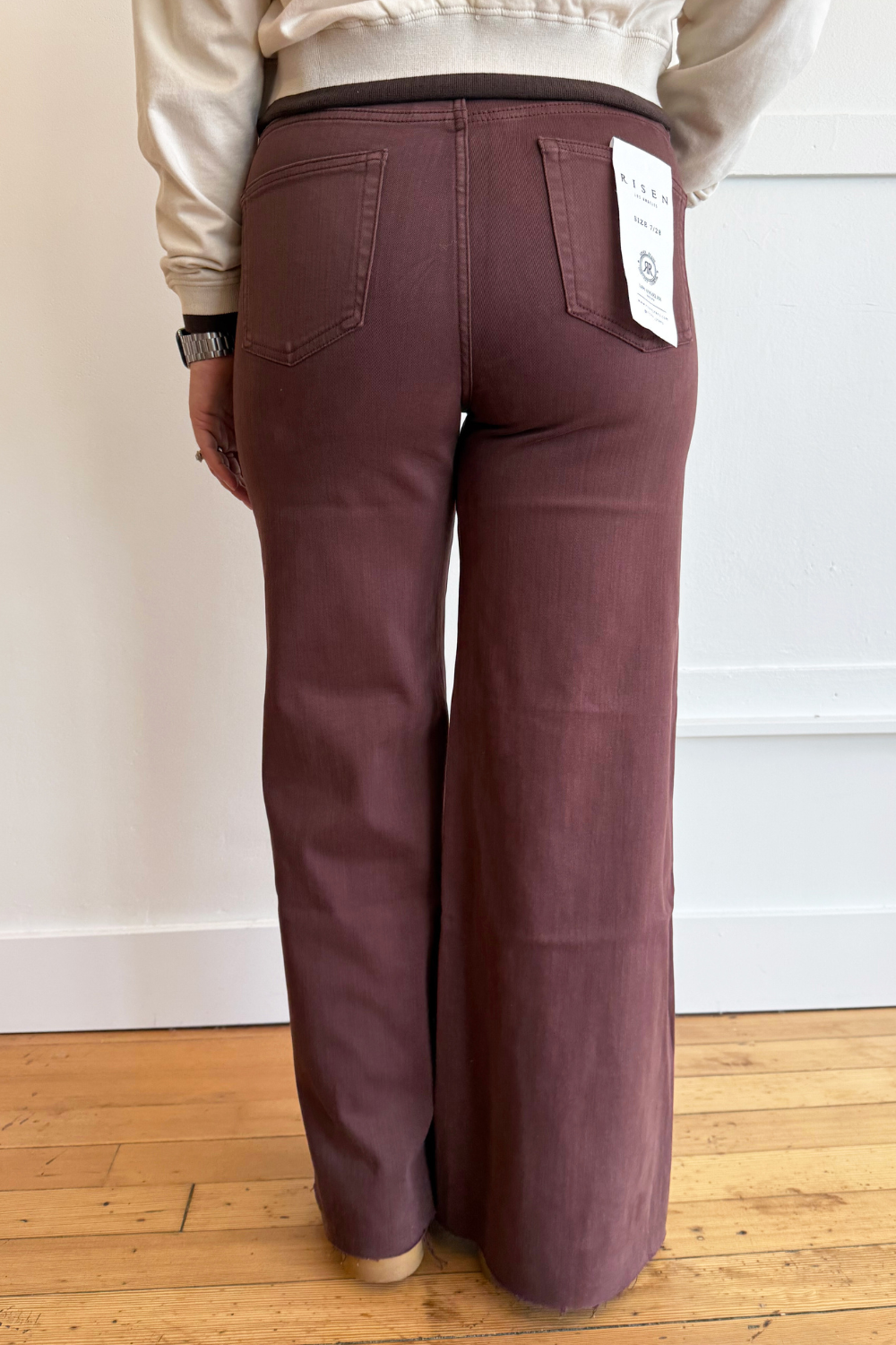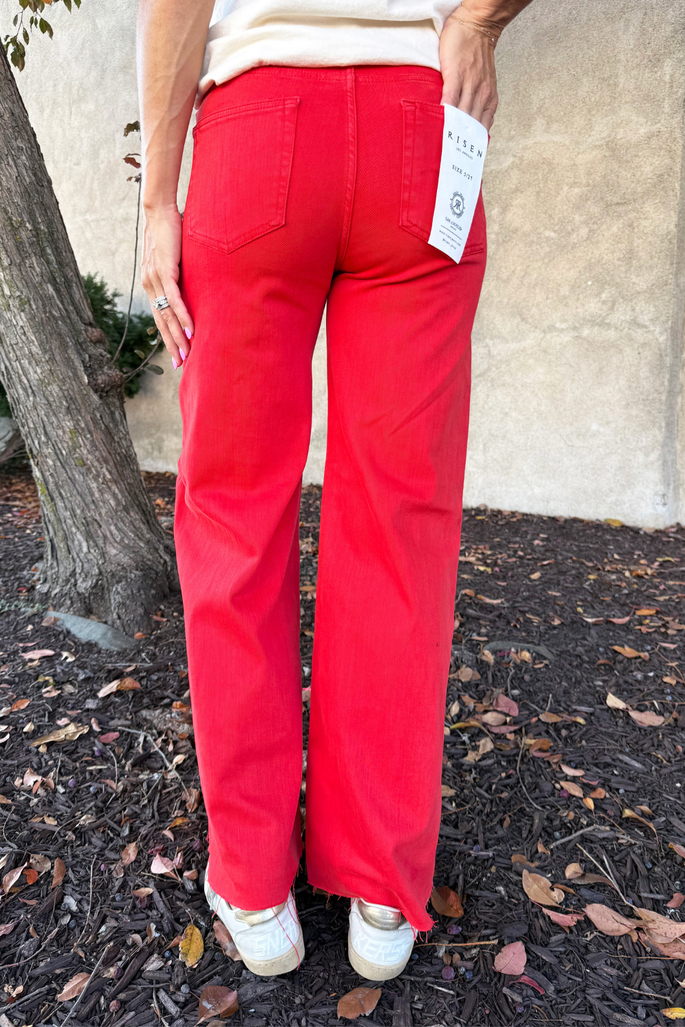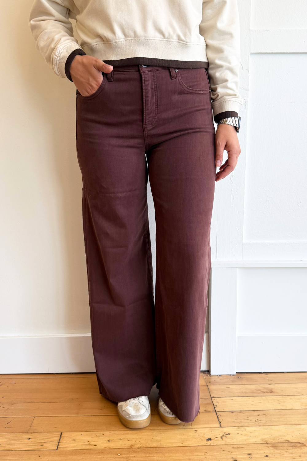 These high-rise wide leg jeans make a bold statement with their vibrant, eye-catching finish. Designed to sit comfortably at the waist, they offer a flattering silhouette that elongates the legs. The structured denim holds its shape while allowing for easy movement. Perfect for adding a pop of personality to any outfit!