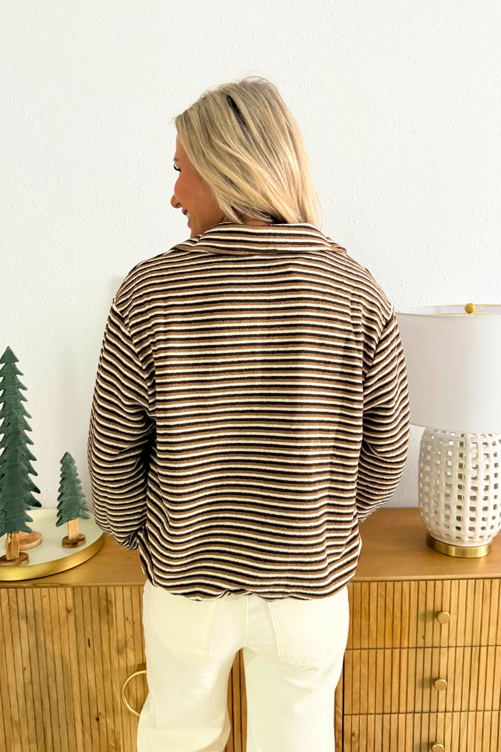 This striped knit half-zip sweatshirt blends cozy warmth with a playful, modern silhouette. The bubble hem adds soft volume, while the classic stripes and half-zip neckline give it a sporty-chic feel. Perfect for effortless, everyday style with a touch of personality!