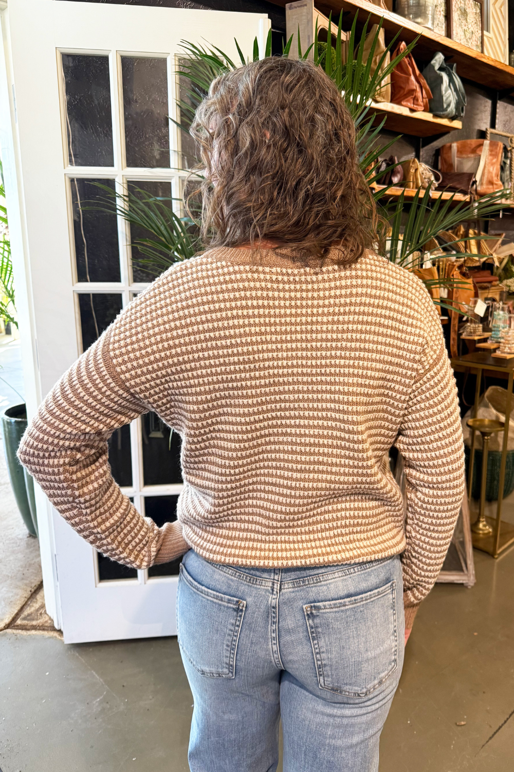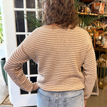 Two Toned Color Trimmed Long Sleeve Crew Neck