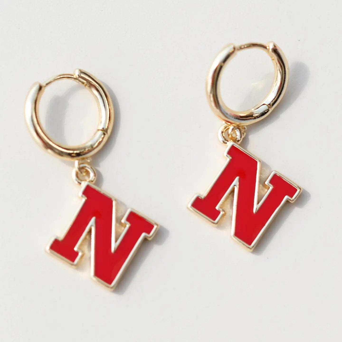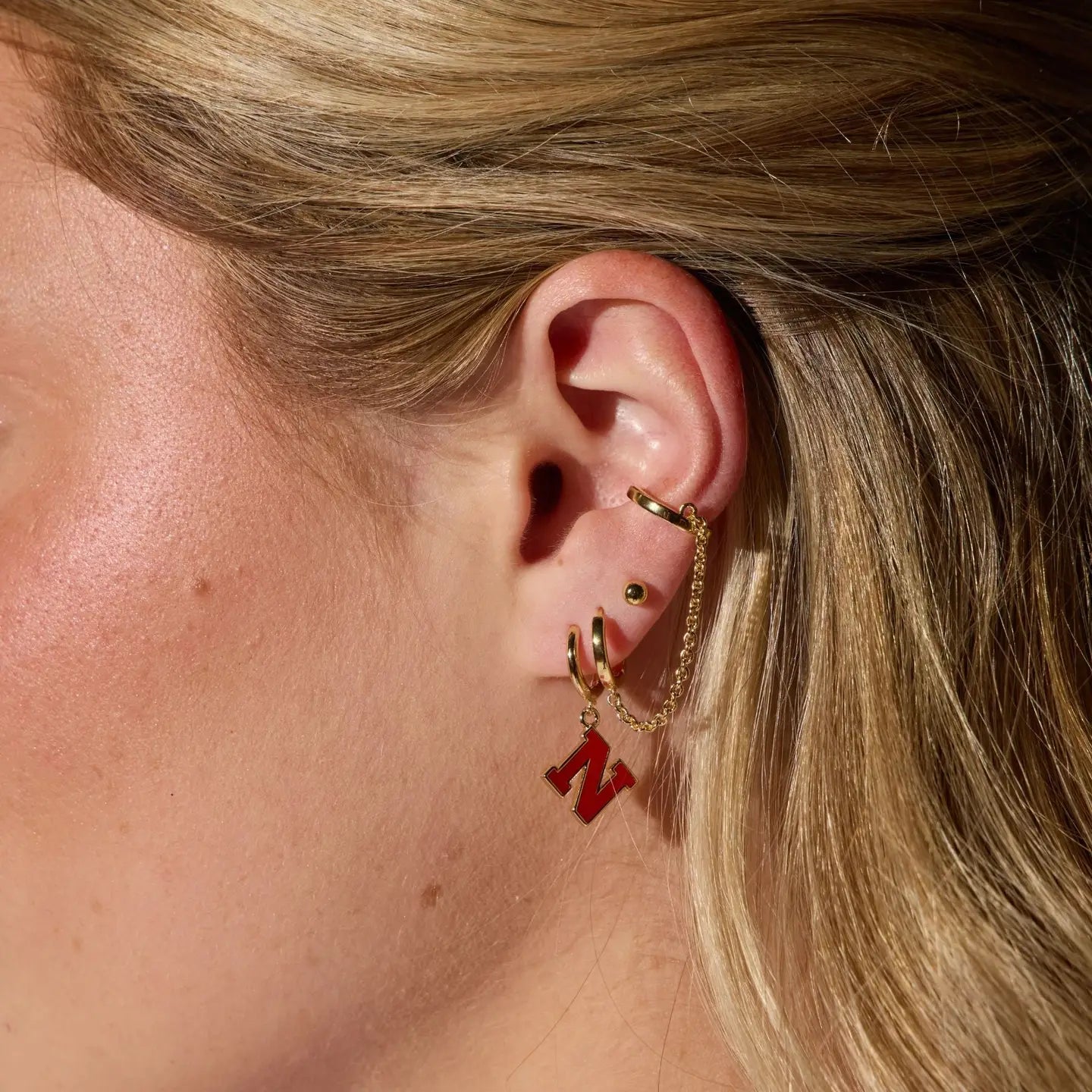 Elevate your game day look with our University of Nebraska "N" Enamel Huggies. These monochromatic red University of Nebraska "N" enamel huggies are a subtle nod for showing off your team spirit in style.