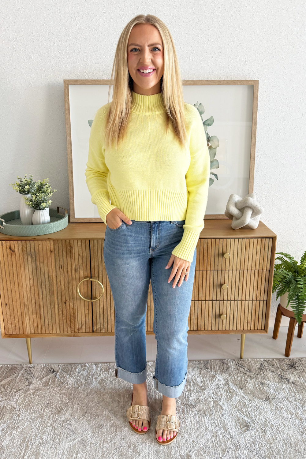 The Uptown Mock Sweater is perfect for crisp fall days. This long sleeve sweater has a mock neck, drop shoulder, and banded cuffs and hem. Wear it with denim and sneakers or boots for an easy casual look.