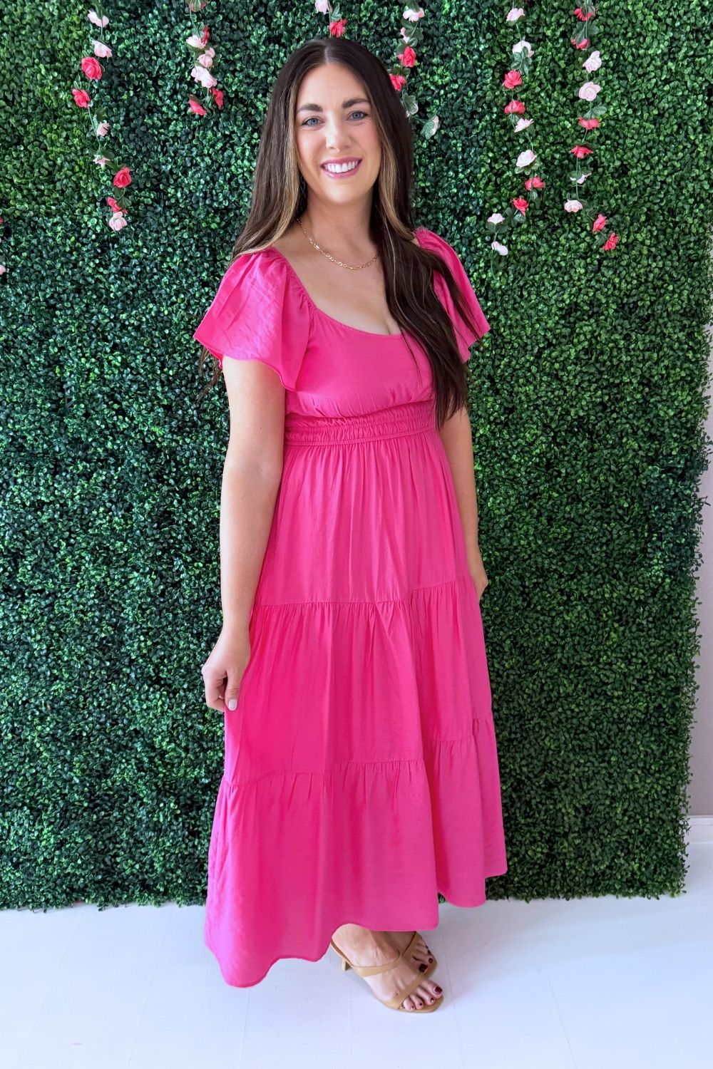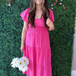 This V Neck Raglan Flutter Sleeve Solid Tiered Maxi Dress is a bright and feminine piece perfect for spring and summer days. Designed with a flattering v neckline, soft raglan flutter sleeves, and a flowy tiered skirt, this maxi dress creates an effortless and comfortable silhouette. The lightweight feel and vibrant color make it perfect for brunch, vacations, or any warm-weather occasion.