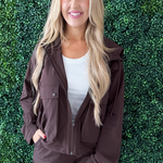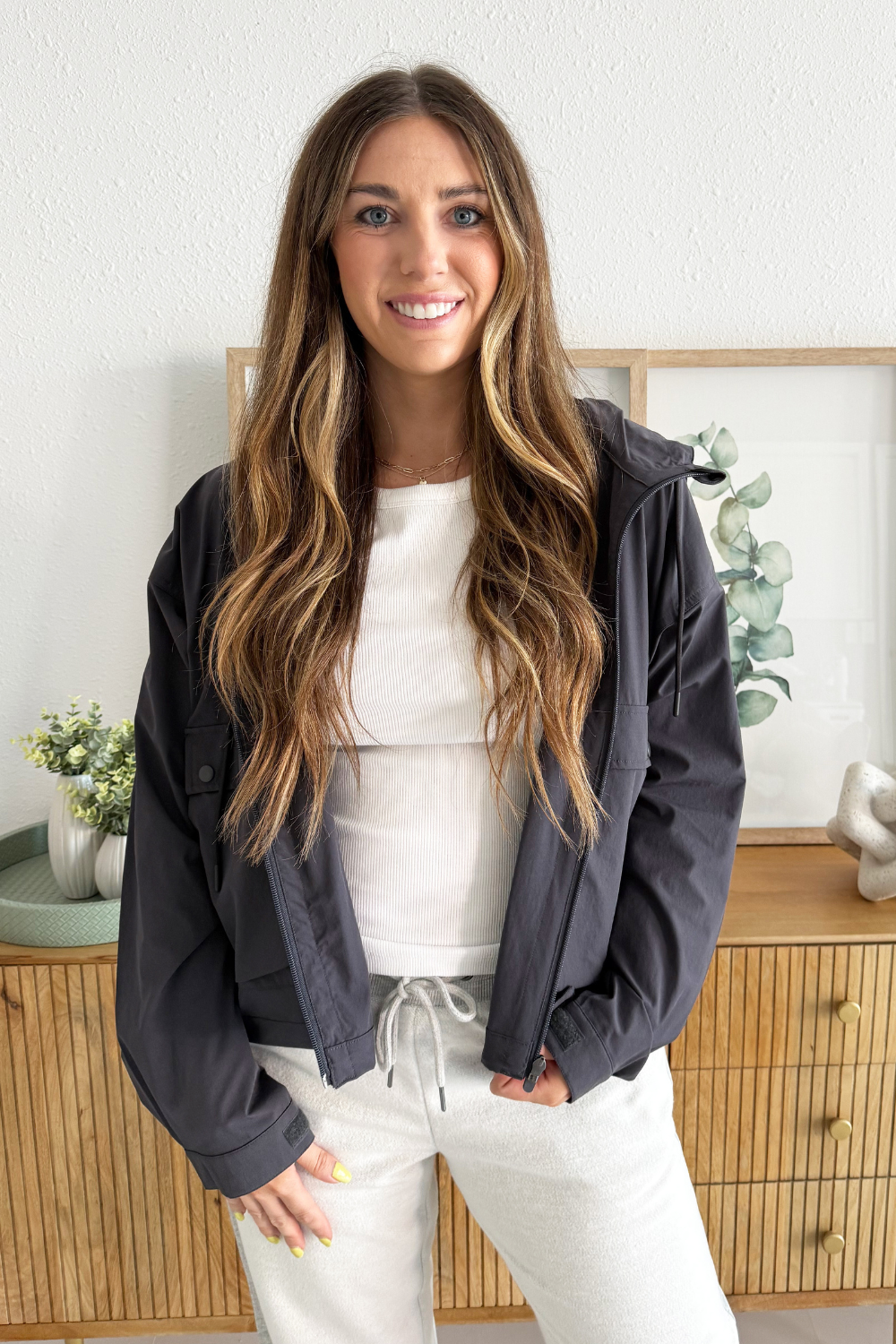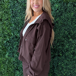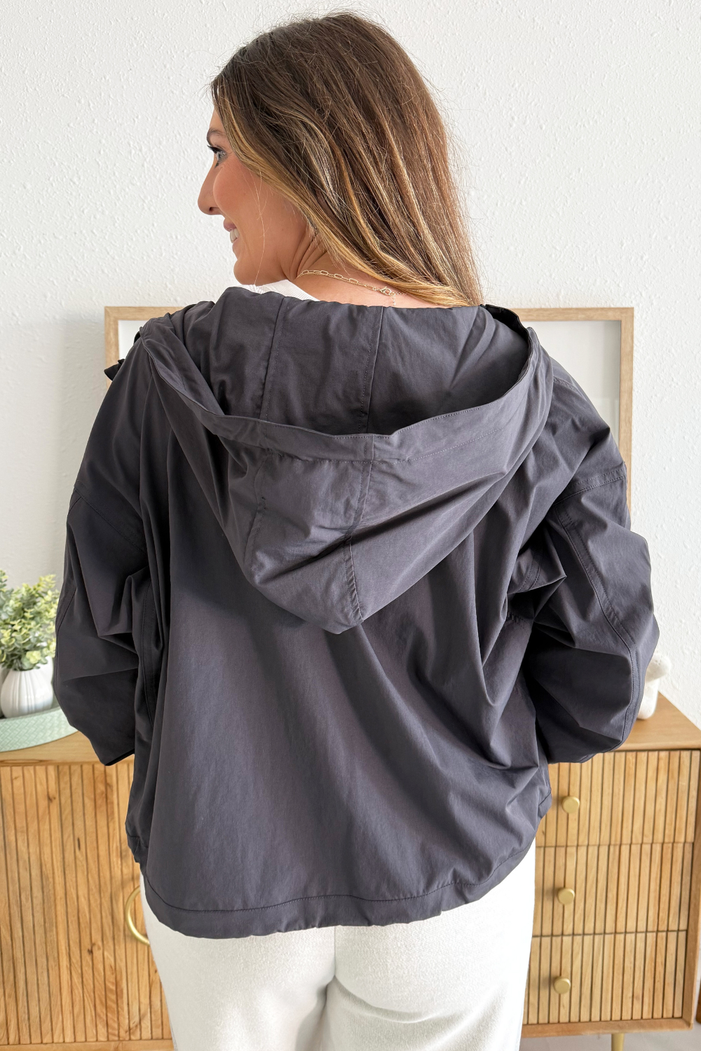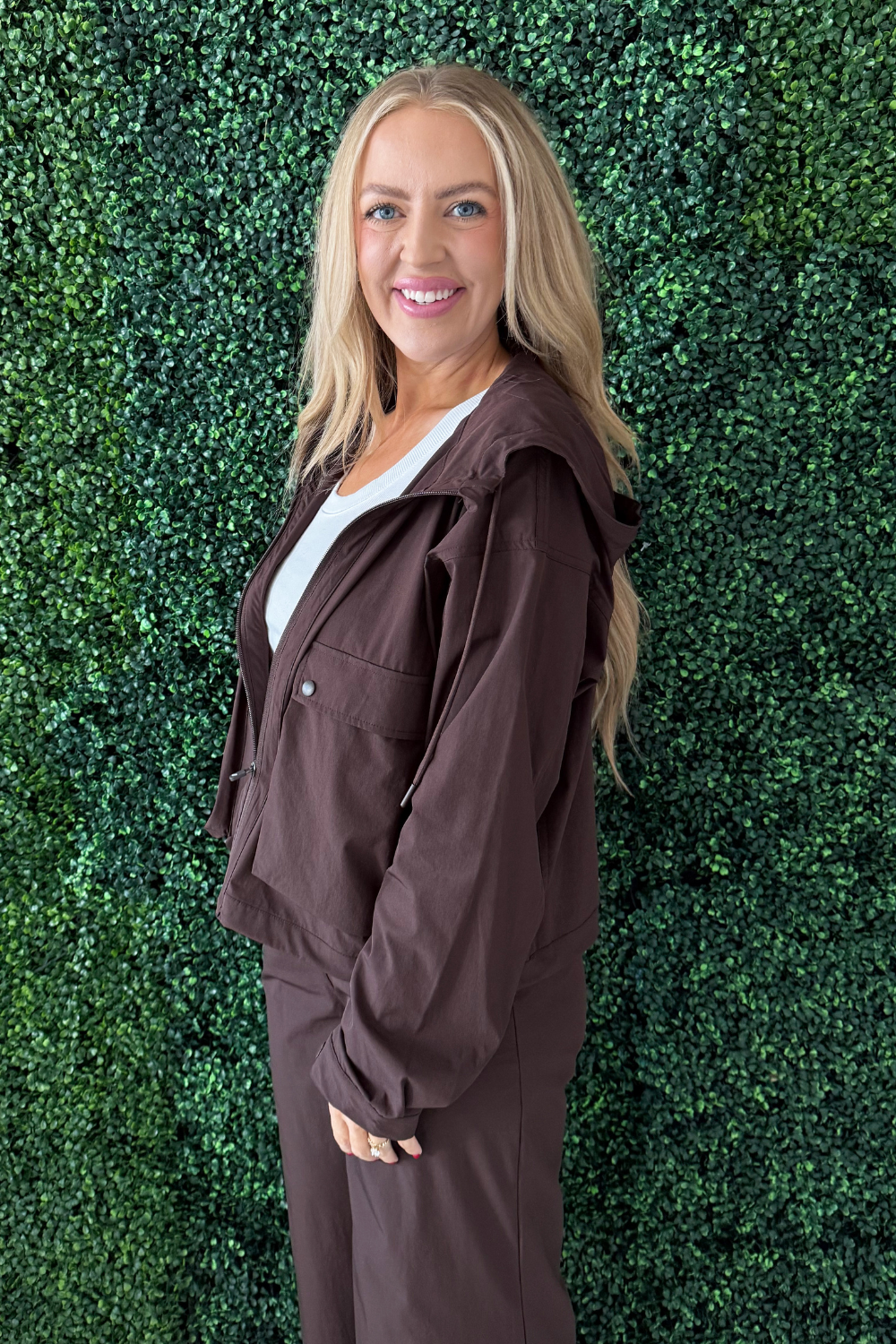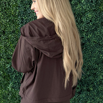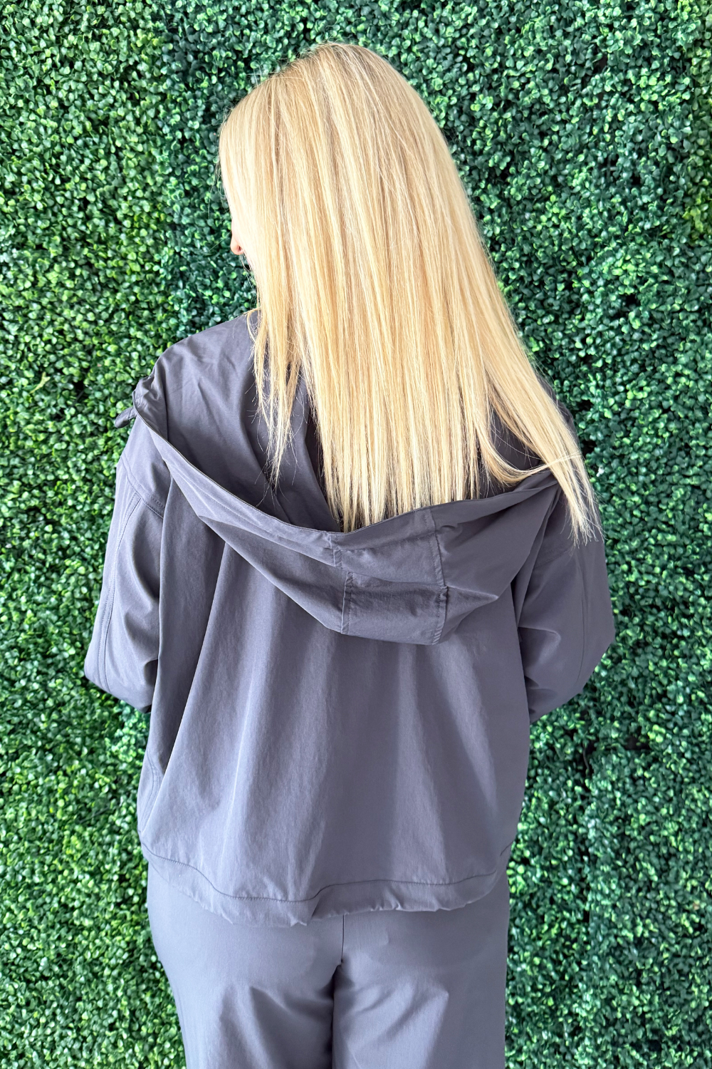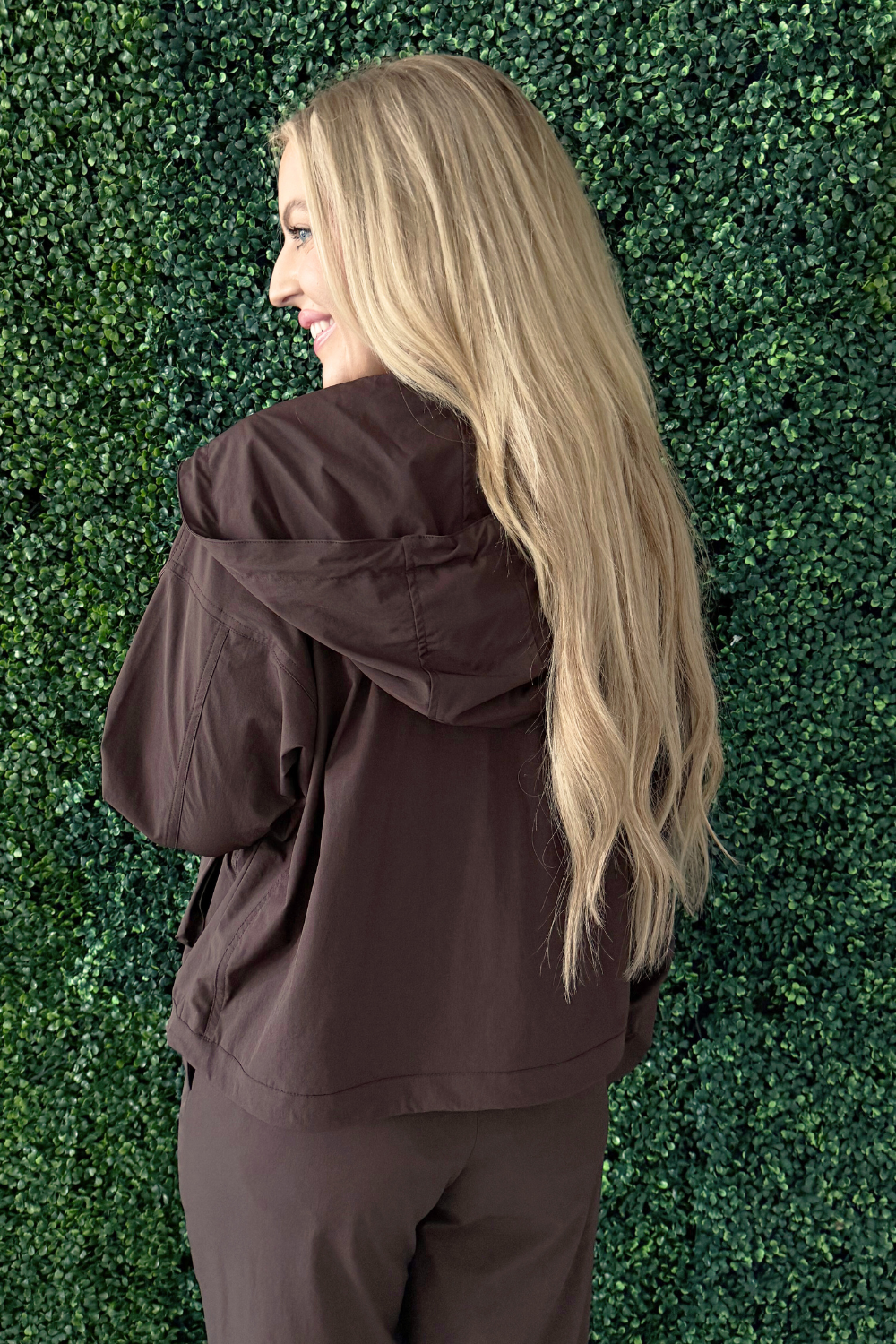 The Walker Jacket is made for cool autumn days. This long sleeve jacket has a hood with adjustable drawstrings, zip front closure, side pockets with snap buttons, and Velcro at the cuff. It comes in two great colors, perfect for fall.
