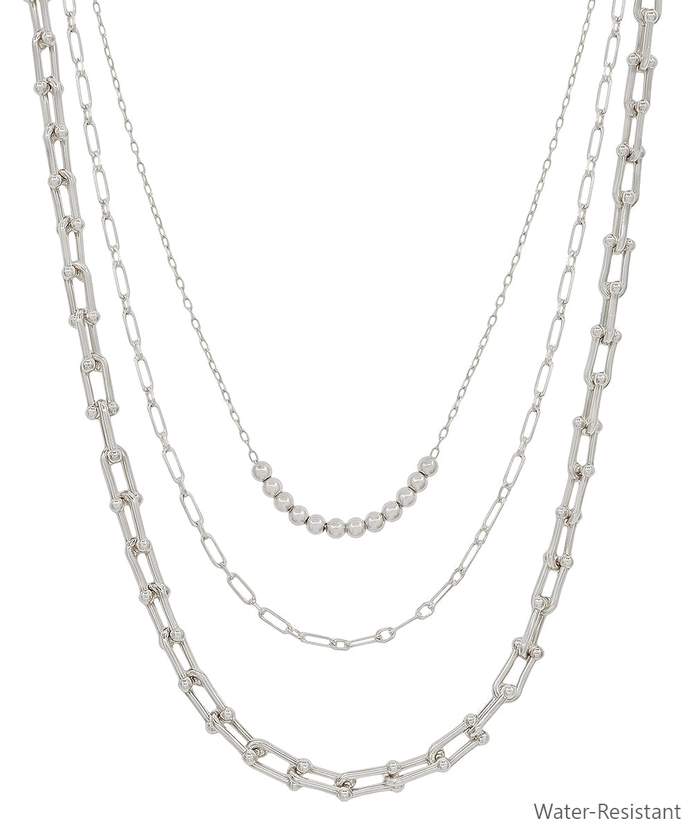 - Water Resistant Triple Layered Beaded Chain Necklace