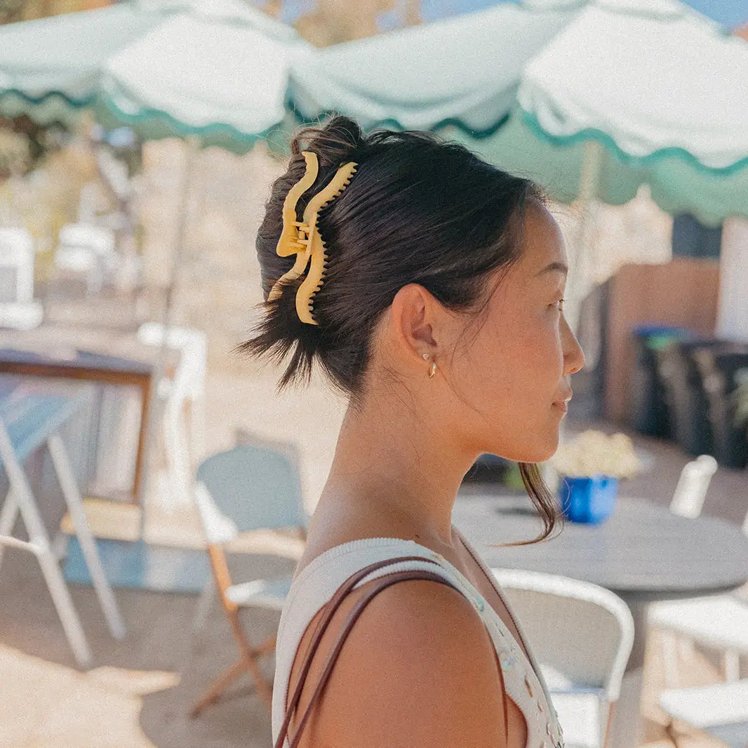 Designed with a unique wave shape that’s both stylish and functional, this large claw clip grips every strand — even thick, textured, or slippery hair — and keeps it secure all day long. Whether you’re running errands, headed to work, or just running late, this clip stays put (and looks cute doing it).
