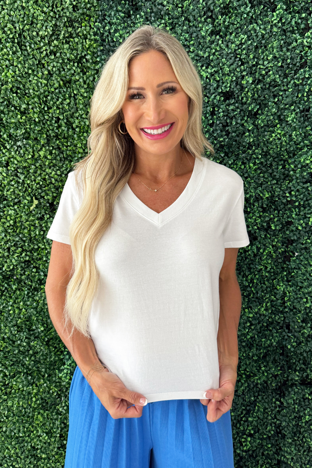 Made from a relaxed, loose-knit cotton jersey, this short sleeve v-neck is your anytime, anywhere tee. The soft texture and easy fit make it a go-to for everything from morning coffee to weekend errands.