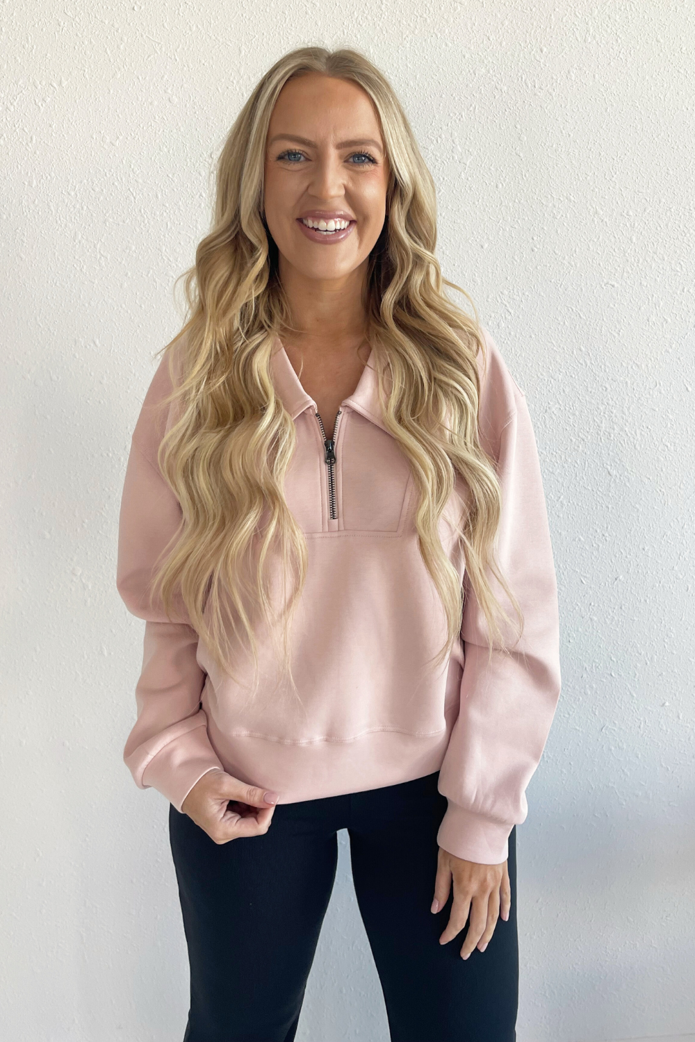 The Wide Collar Half Zip Oversized Sweatshirt will elevate your casual look. This long sleeve sweatshirt has an oversized fit and is made with super soft fabric for all day comfort. The stitching around the front of the top brings structure to the look. Pair this sweatshirt with denim or joggers for an easy outfit!