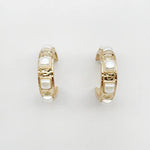 - Worn Earrings with Pearl Square Stone Accents