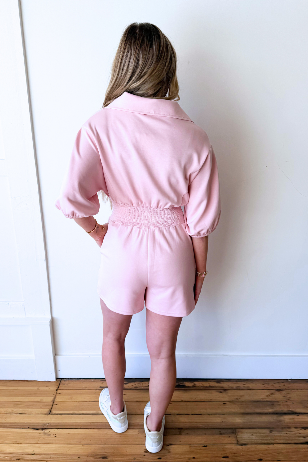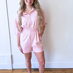 The Zip Smocked Waist Romper is an easy one-and-done outfit with a flattering, comfortable fit. Designed with a front zip detail and a smocked waist, it cinches in just right while allowing for all-day wear. The relaxed shorts and short sleeves keep it breezy and versatile. Perfect for casual days, weekend outings, or travel.