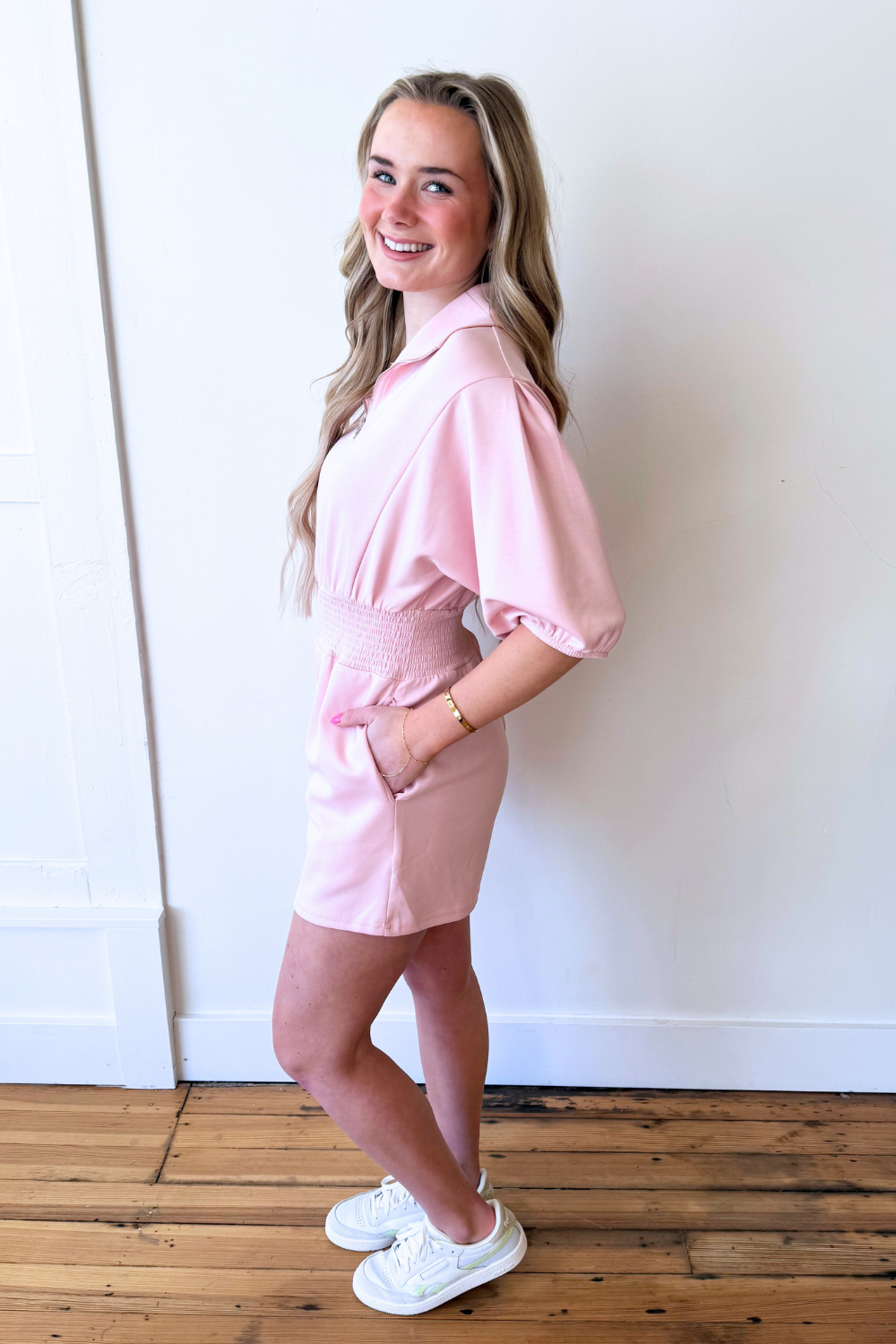 - Smocked waist for a flattering fit